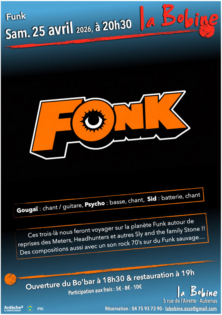 Le funk est un genre musical apparu au milieu des années 1960 aux USA ; issu principalement de la soul, du jazz, blues (puis du jazz et du rock), le funk se caractérise par la prédominance de la section rythmique : guitare, basse, batterie qui jouaient le groove…. James Brown est considéré comme le parrain du funk.