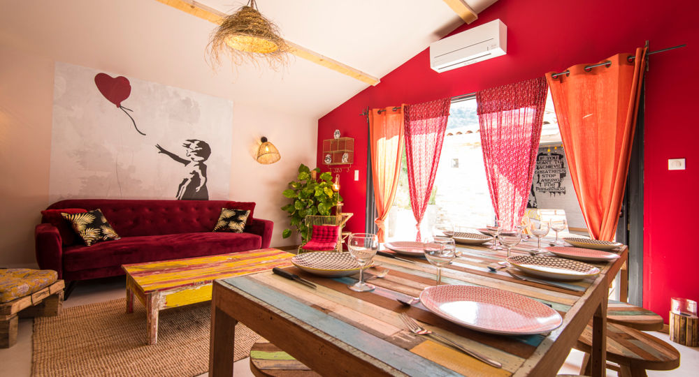 Soyez les bienvenus sur notre domaine du 113 impasse de l’Usine. Situé en plein cœur de l’Ardèche touristique, vous serez accueillis dans une ambiance unique et atypique ! Chacun des appartements possède un extérieur privé pour plus d’intimité. La décoration de nos logements est inspirée des 4 coins de la planète. Vous pourrez vous détendre sous le soleil au bord de la piscine ou sous le pool house plus ombragé, et profiter du coin bar-snacking sur place. À votre arrivée, nous vous donnerons tous les renseignements sur les activités culturelles et touristiques de notre région