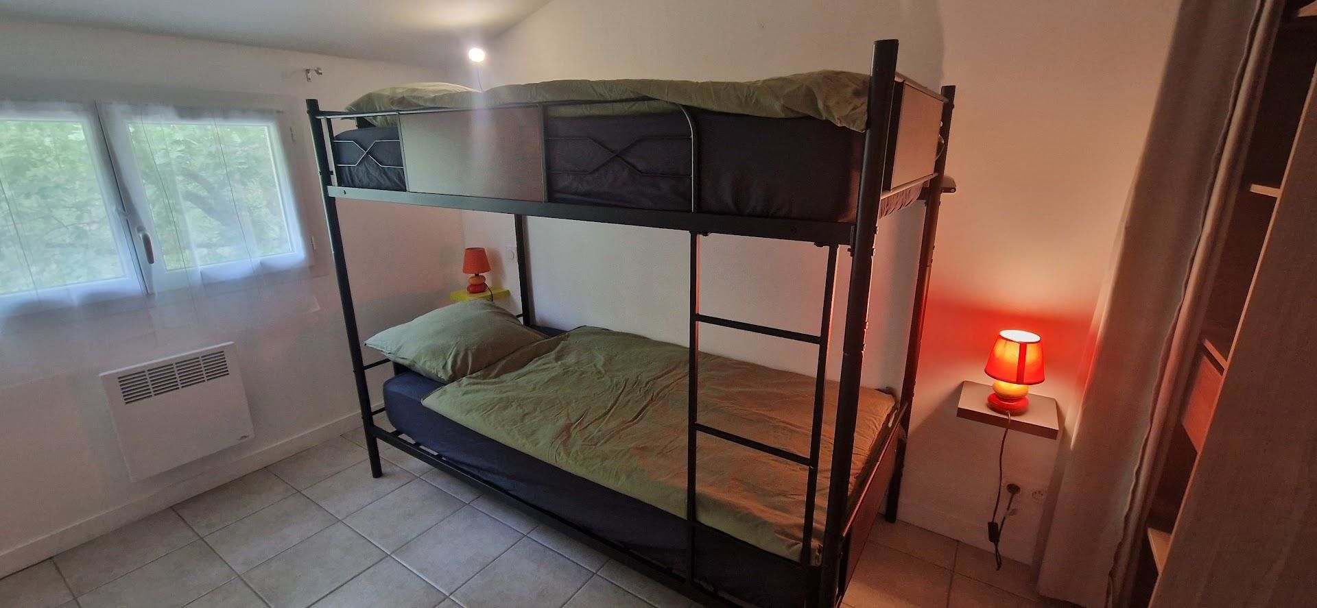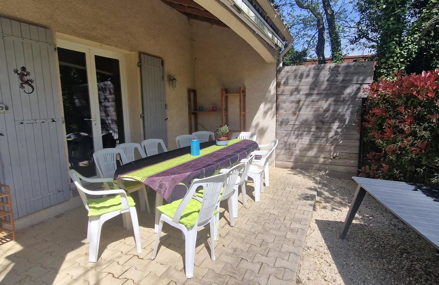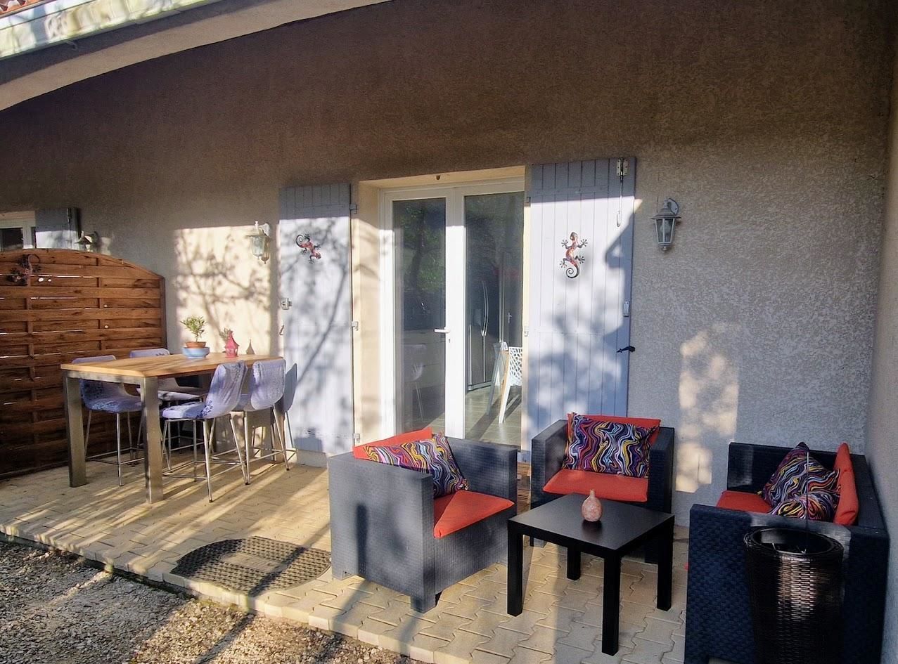 À l’extérieur, vous profitez d’une terrasse privative clôturée, idéale pour les repas, planchas à l’ombre du store électrique. Le petit + : des moustiquaires pour des soirées tranquilles, même en plein été.