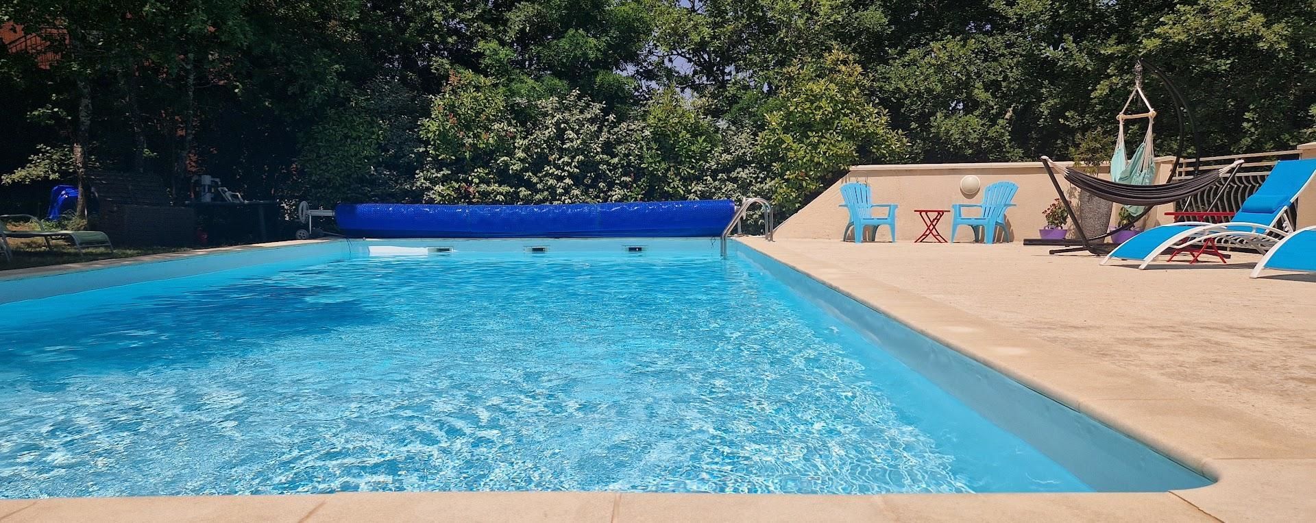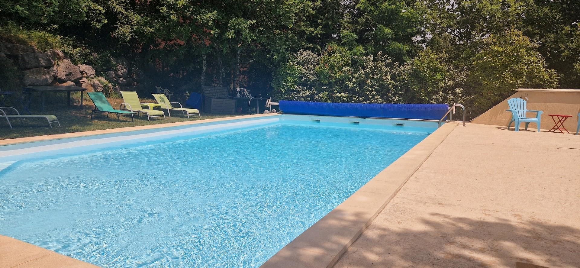 Infos piscine : 12x6m – prof : 0,80cm à 1,50m / clôture + alarme / ouverte et chauffée des vacances de Pâques à Toussaint.