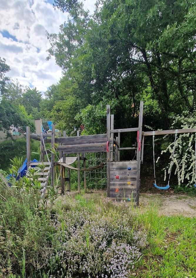 Sur la propriété, la grande piscine sécurisée promet des moments de baignade partagés avec les vacanciers des deux autres gîtes. Les enfants peuvent jouer sur l’aire de jeux pendant que les plus grands se retrouvent autour d’une partie de pétanque.