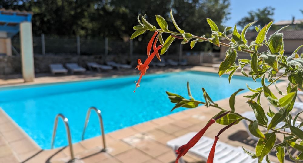 Piscine (12m x 6m) clôturée, avec bains de soleil.