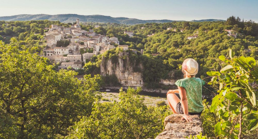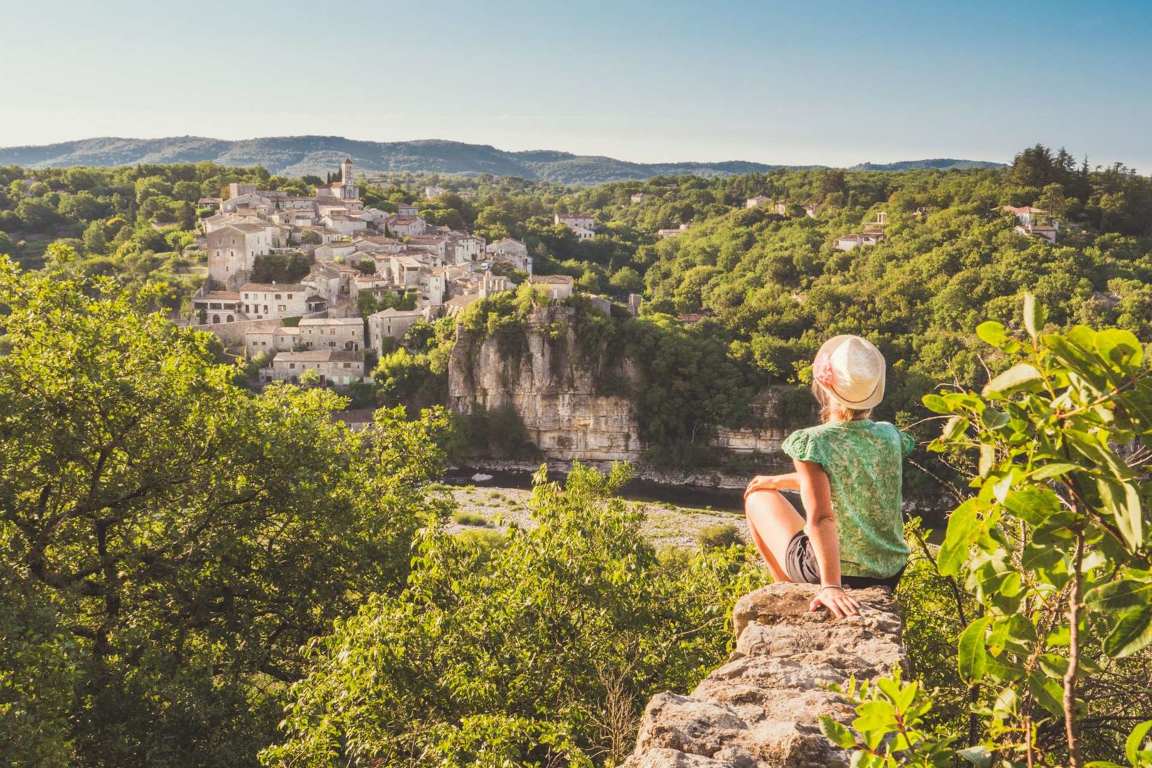 Dépôt de pain dans Balazuc, superettes à Pradons et Vogué (env. 4kms), super U à Ruoms (7kms).