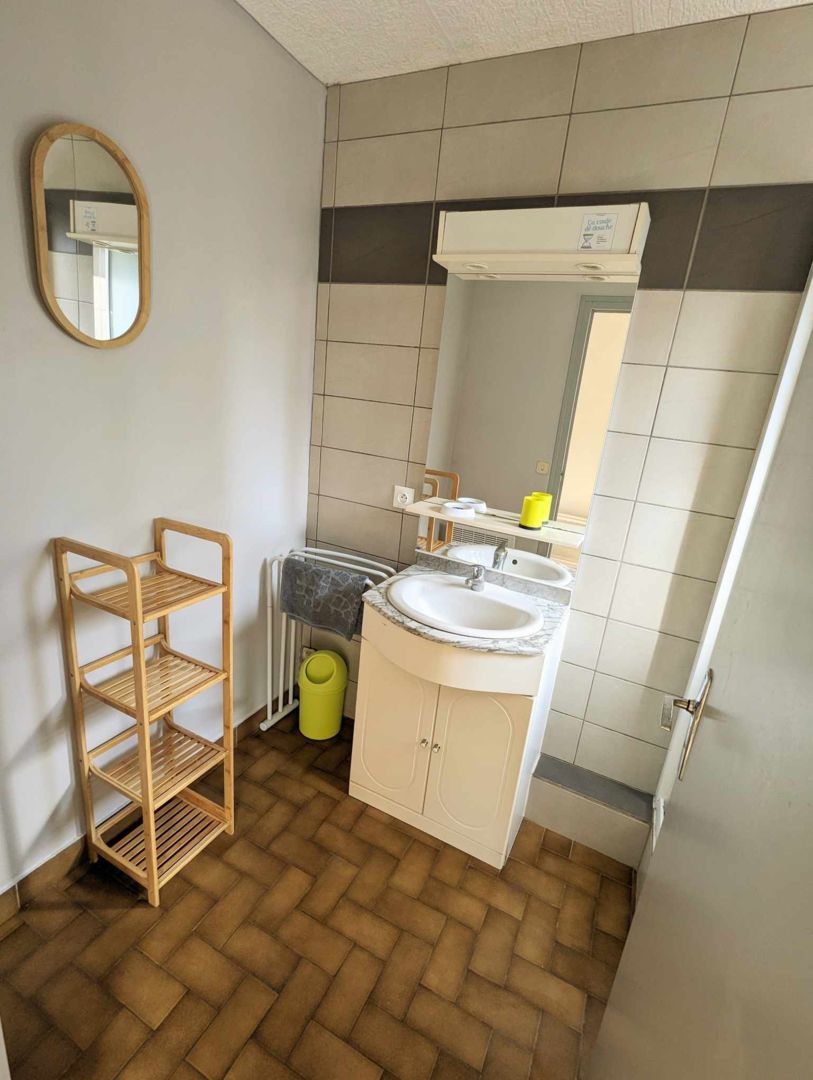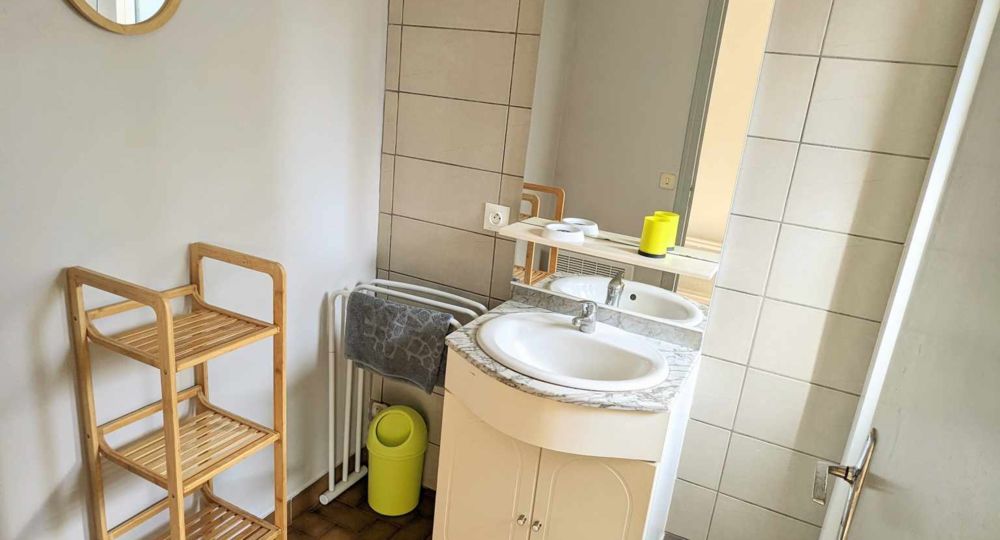 Un petit hall d’entrée, une salle d’eau (cabine de douche et lavabo), un WC indépendant.