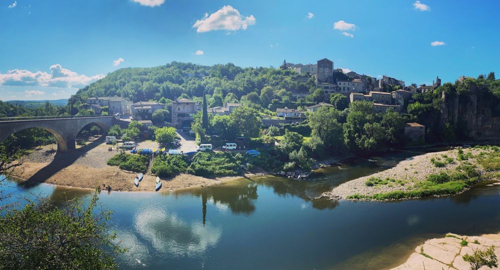 Dépôt de pain dans Balazuc, superettes à Pradons et Vogué (env. 4kms), super U à Ruoms (7kms).