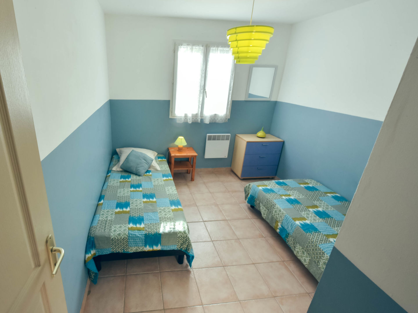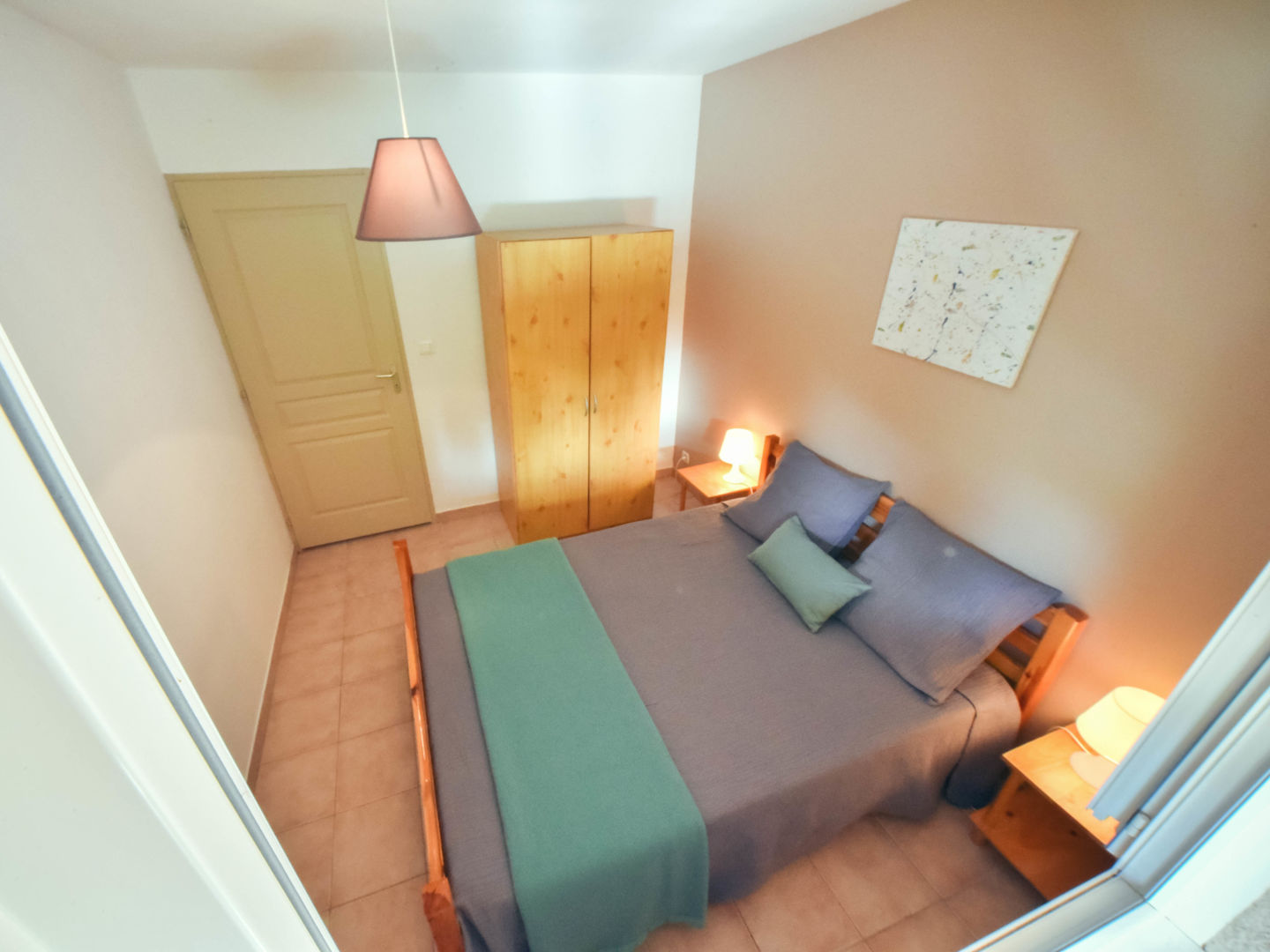 3 chambres (couvertures et couettes fournies, oreillers et traversins) avec commodes ou placards. 1ère chambre avec 1 lit 2 places (140), 2ème chambre avec 1 lit 2 places (140), 3ème chambre avec 2 lits 1 place (90).