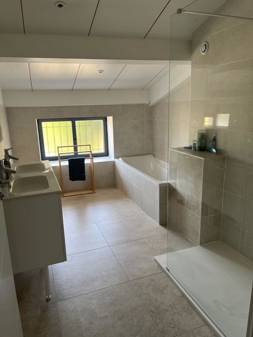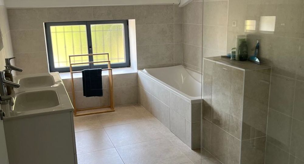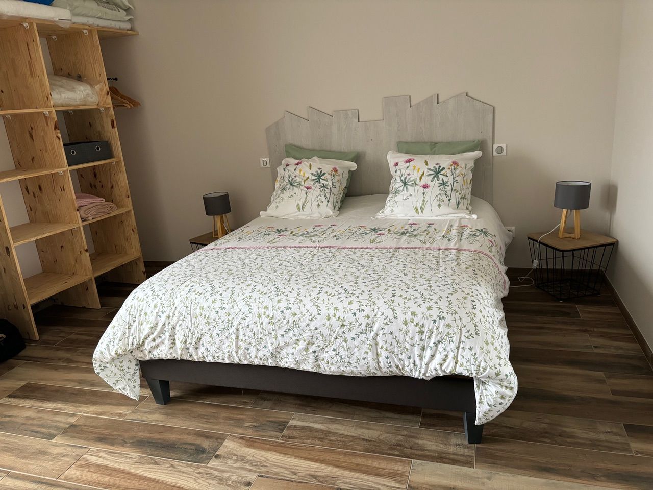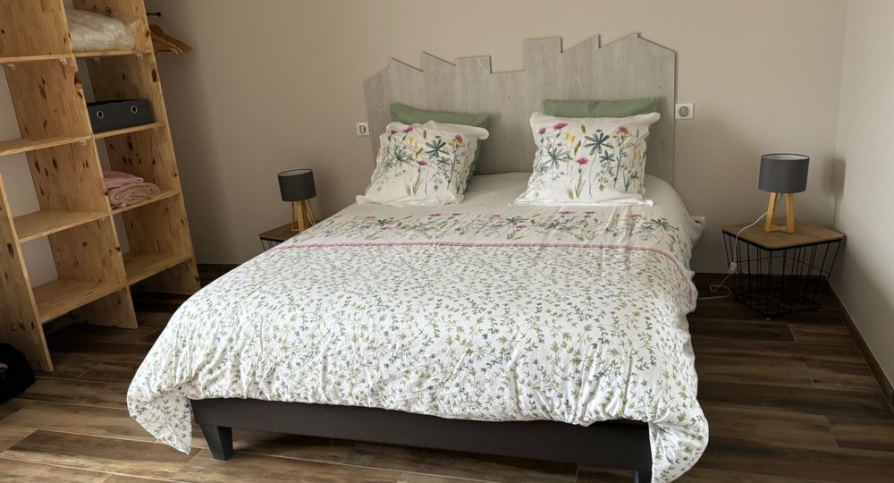 Rez-de-chaussée : – cuisine toute équipée (lave-vaisselle, plaque à induction, four, grille-pain, réfrigérateur, congélateur, micro-ondes, machine à café …) – un salon avec un canapé convertible, une télévision et la WiFi, une chambre avec un lit 160×200 – une salle de bain avec double vasque et douche à l’italienne, ainsi(…)