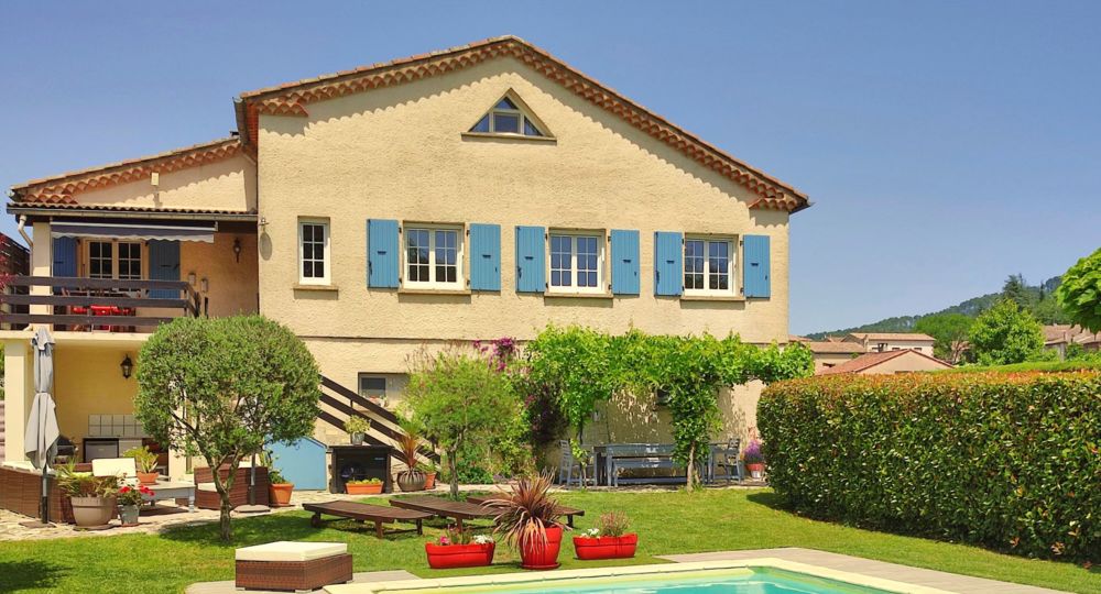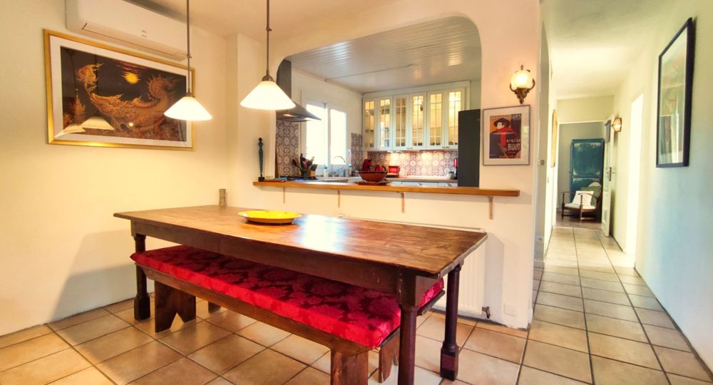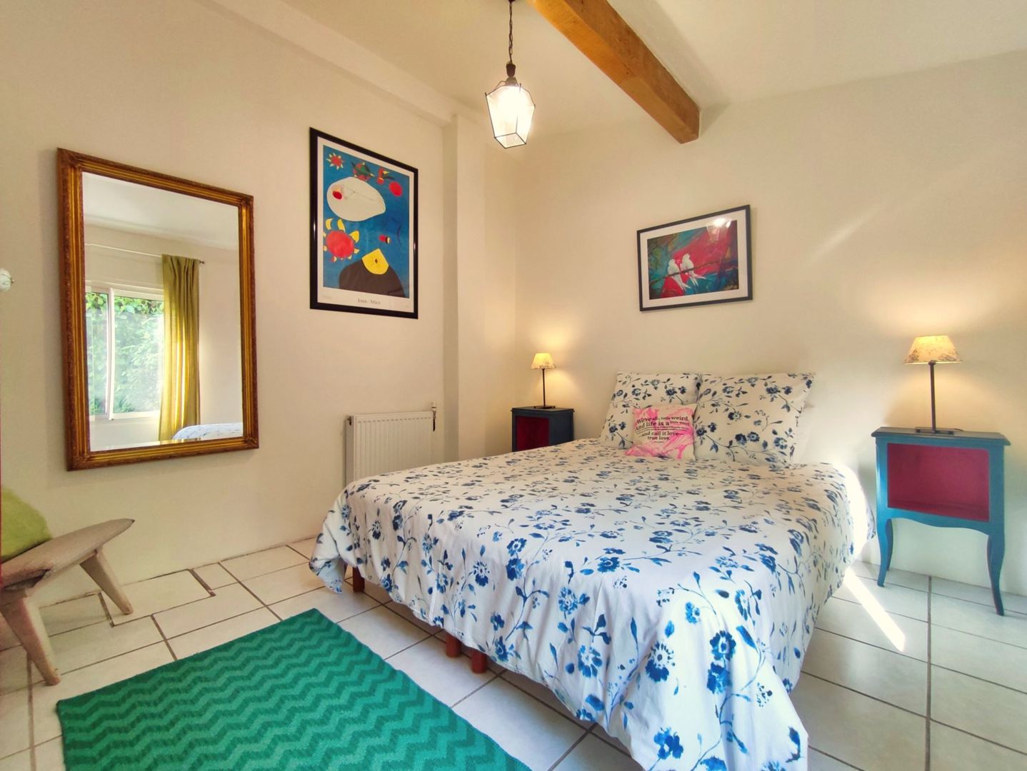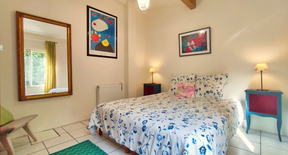 – 1er étage : Un grand séjour avec climatisation réversible et poêle à bois, deux chambres doubles (dont une avec une chambre d’enfant attenante), une salle d’eau avec WC. Une troisième terrasse donne sur le jardin.