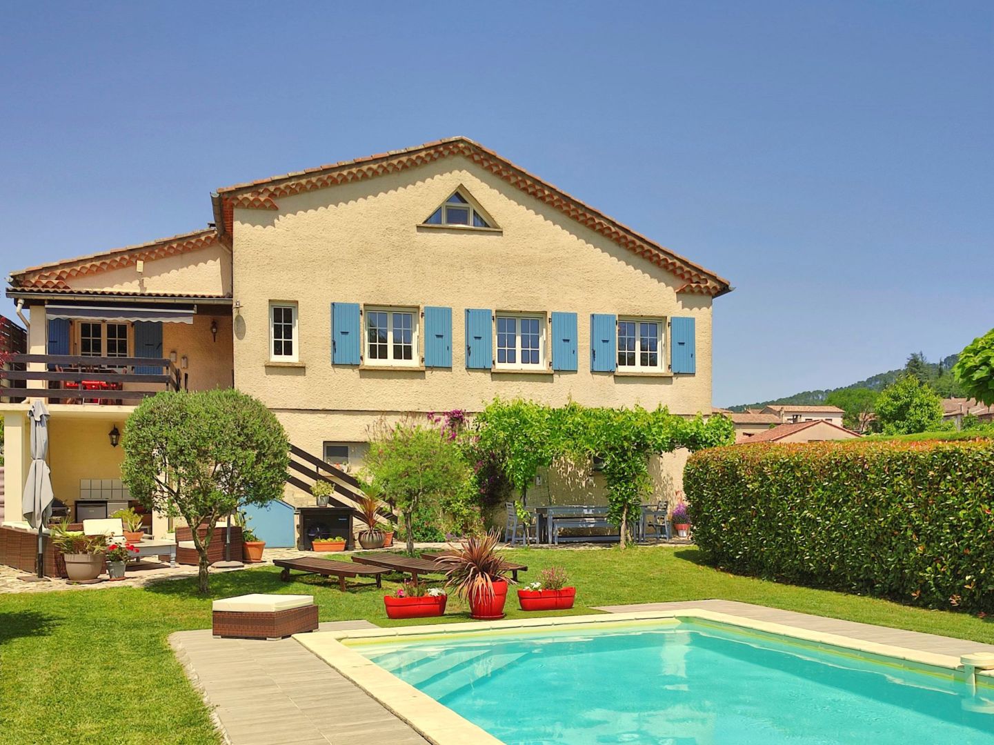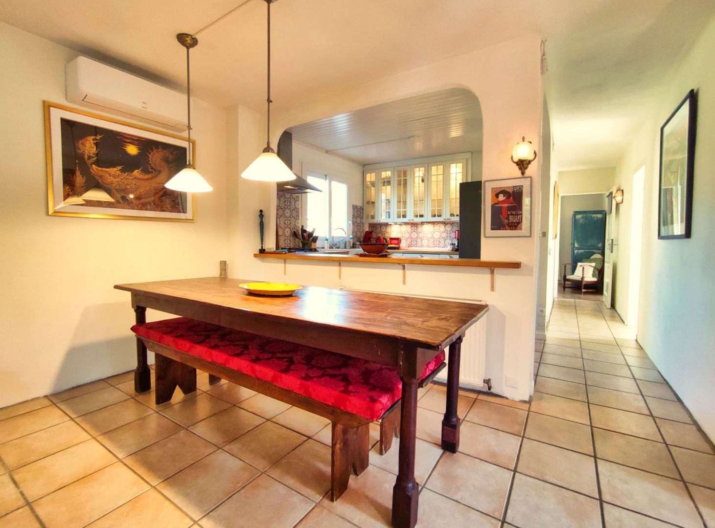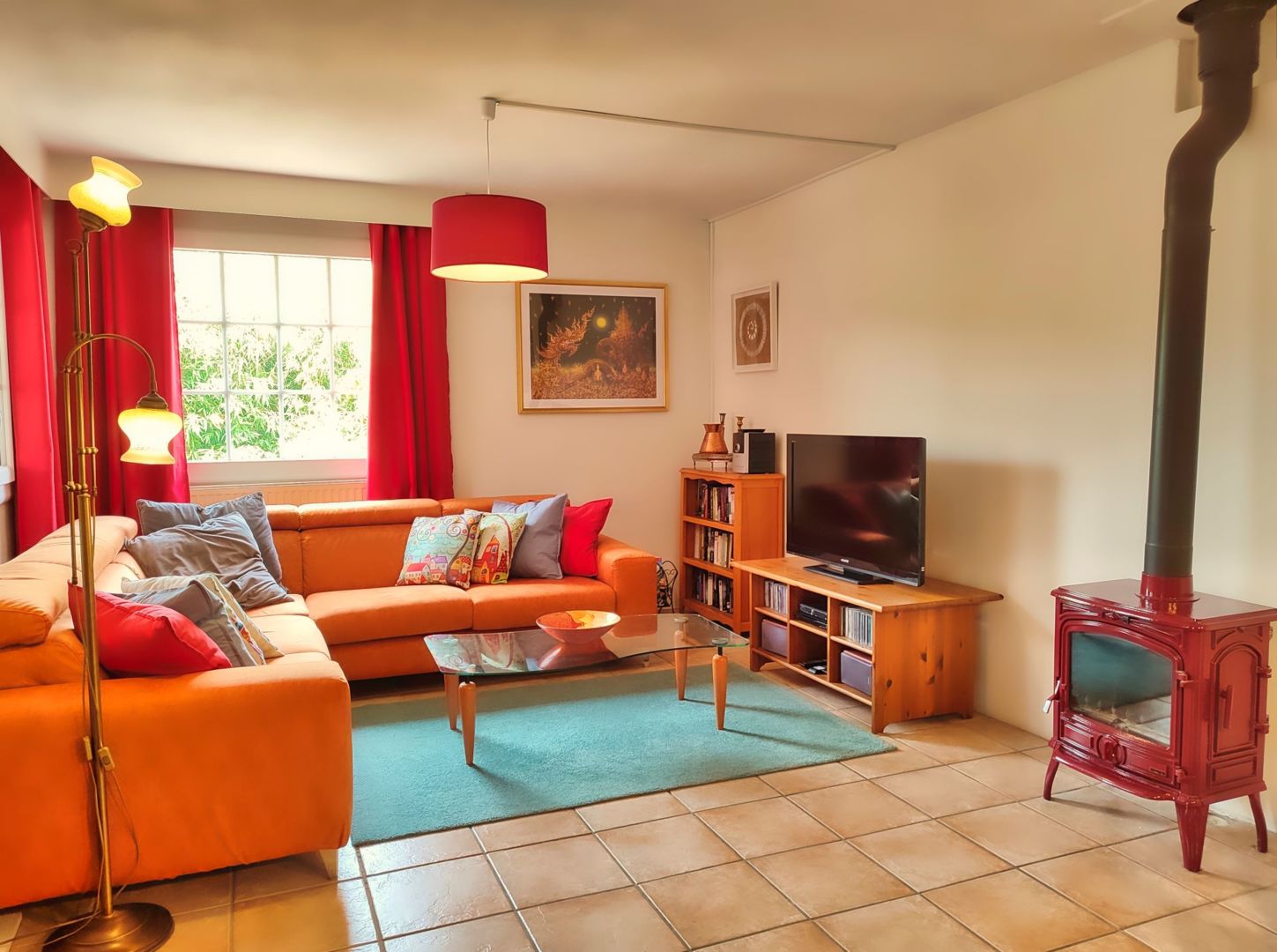 – 1er étage : Un grand séjour avec climatisation réversible et poêle à bois, deux chambres doubles (dont une avec une chambre d’enfant attenante), une salle d’eau avec WC. Une troisième terrasse donne sur le jardin.