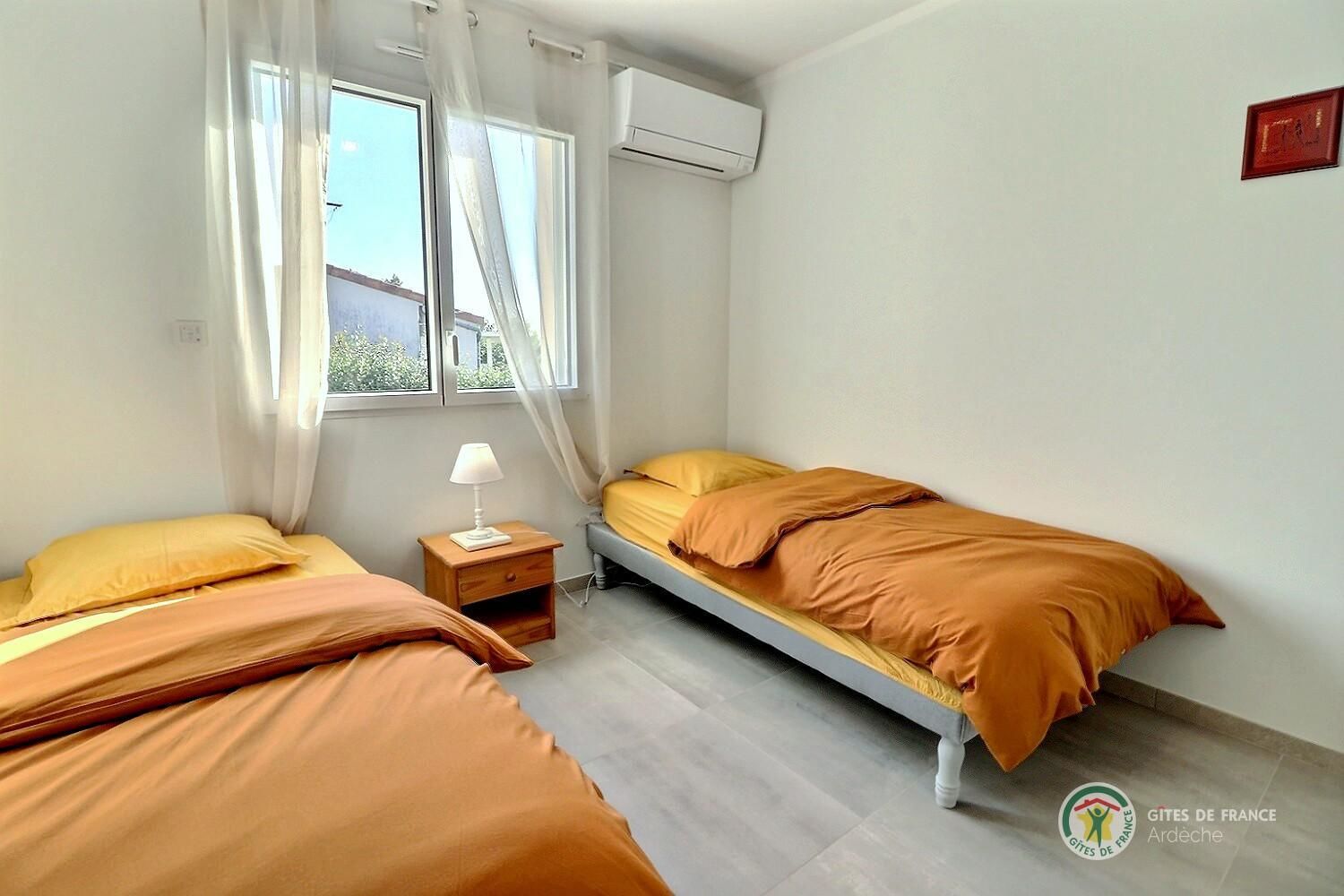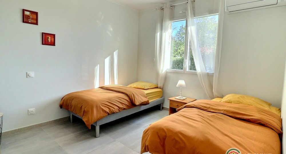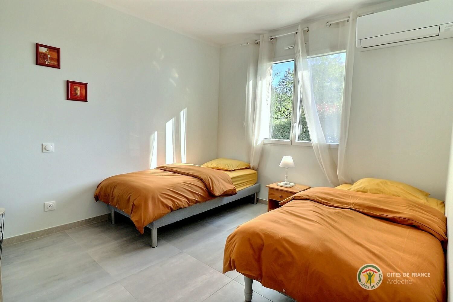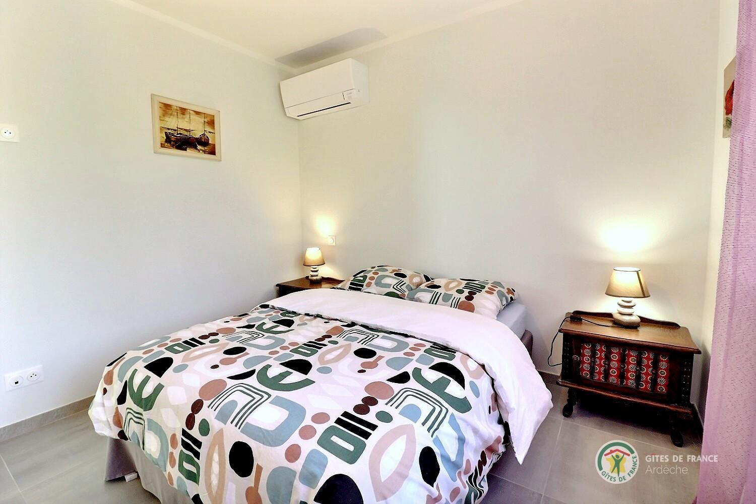 Côté nuit, la maison dispose de 3 chambres, toutes climatisées (2 avec lit en 140 cm, 1 avec 2 lits en 90cm).