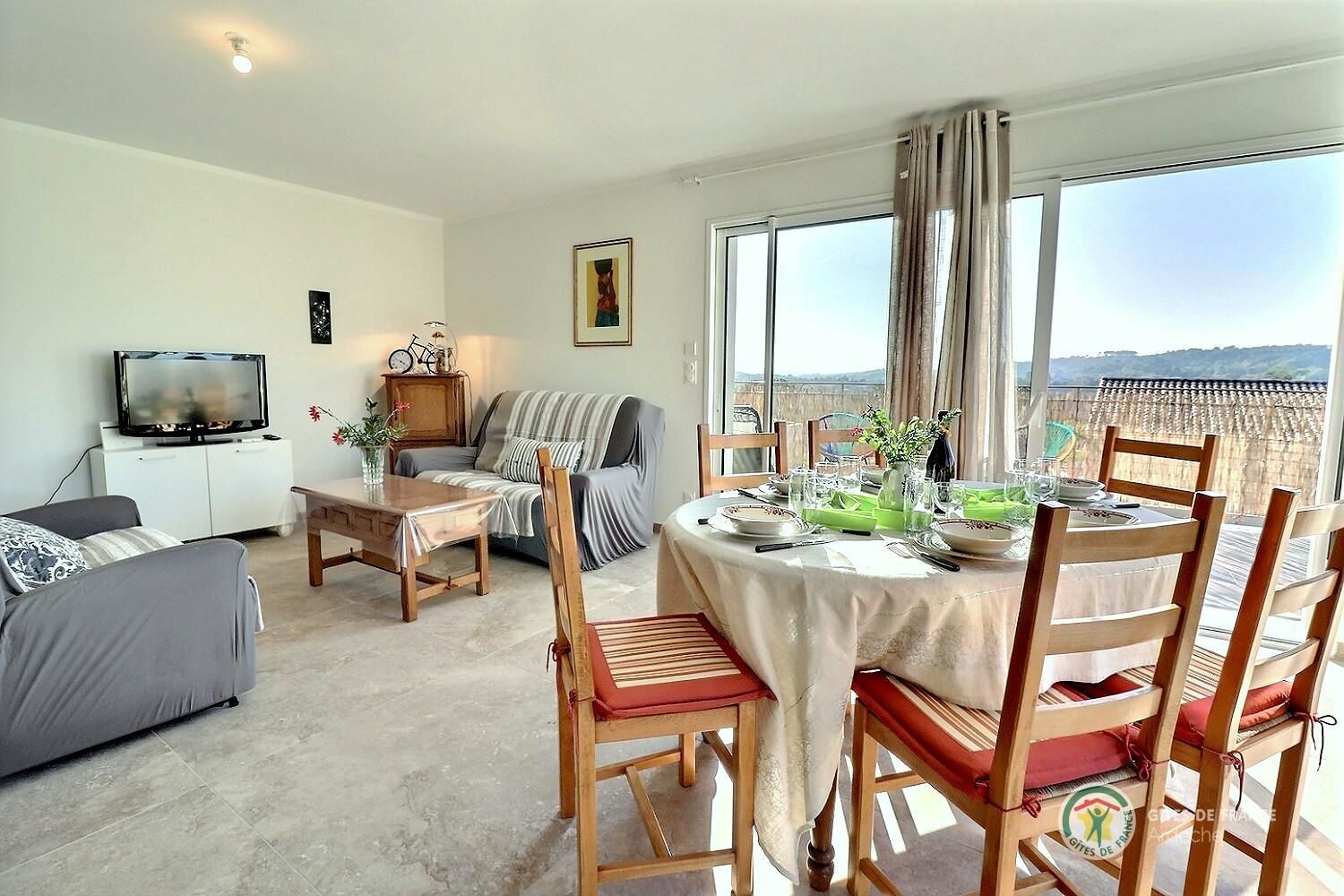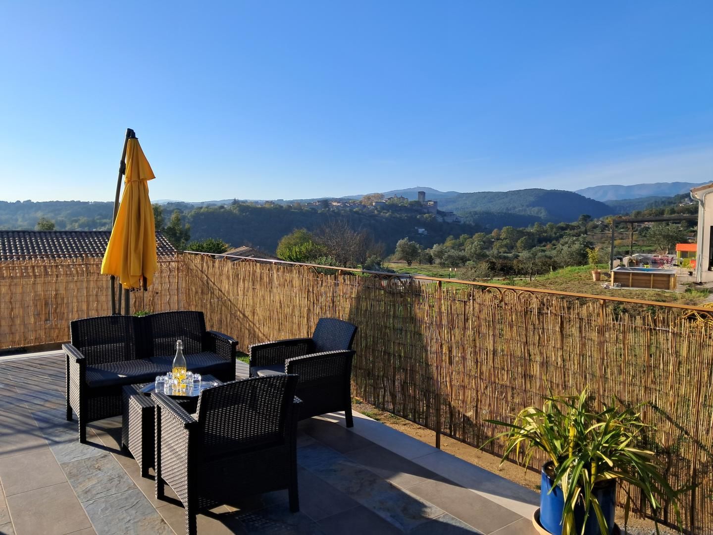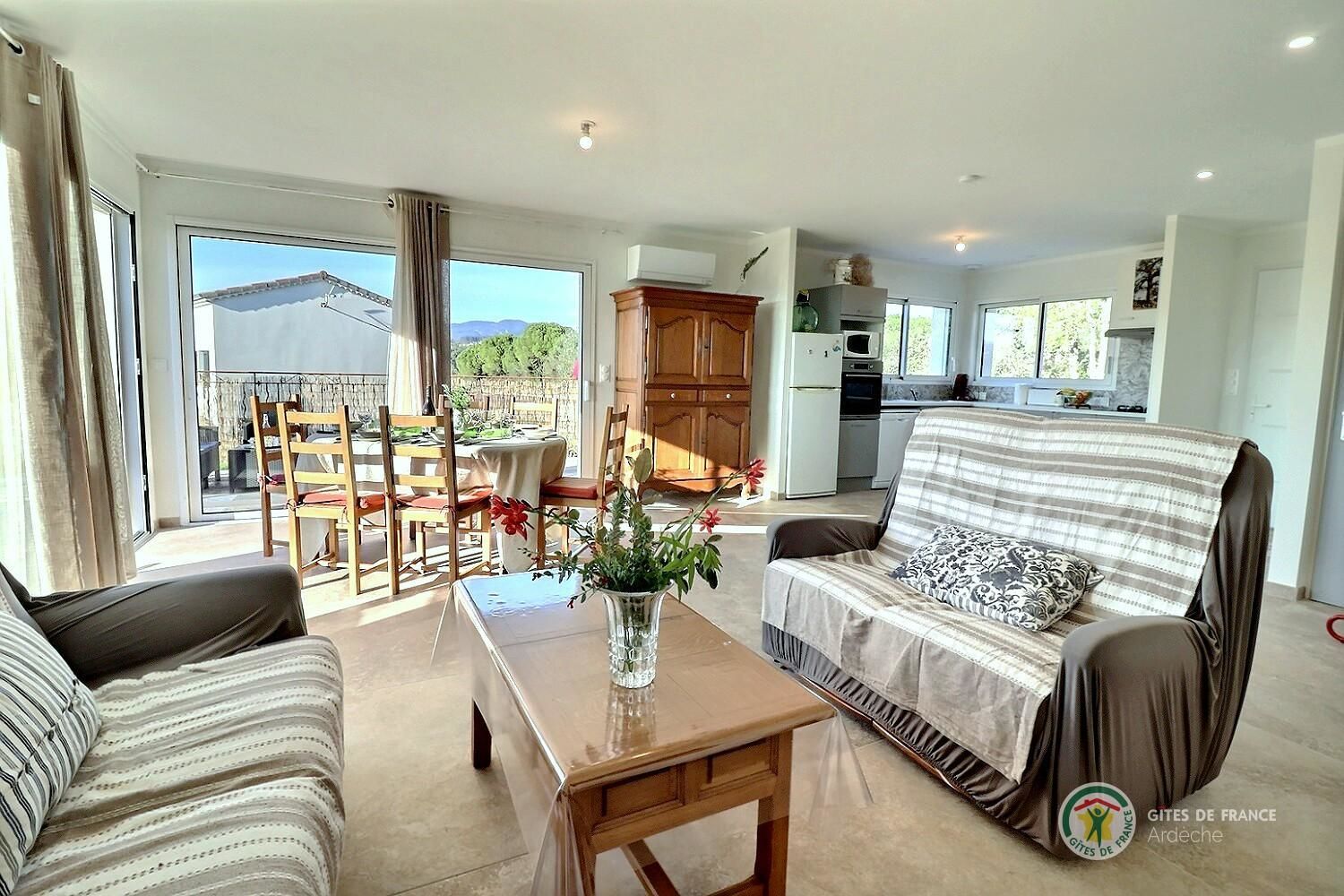 Appréciez la situation privilégiée du gîte La Madeleine avec sa vue panoramique sur le Château de Montréal, le Tanargue et un environnement au calme !