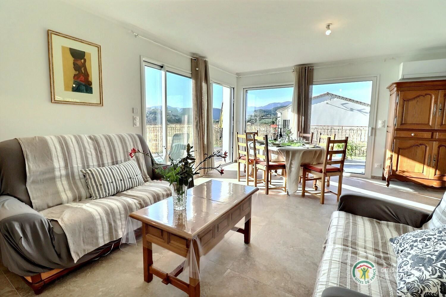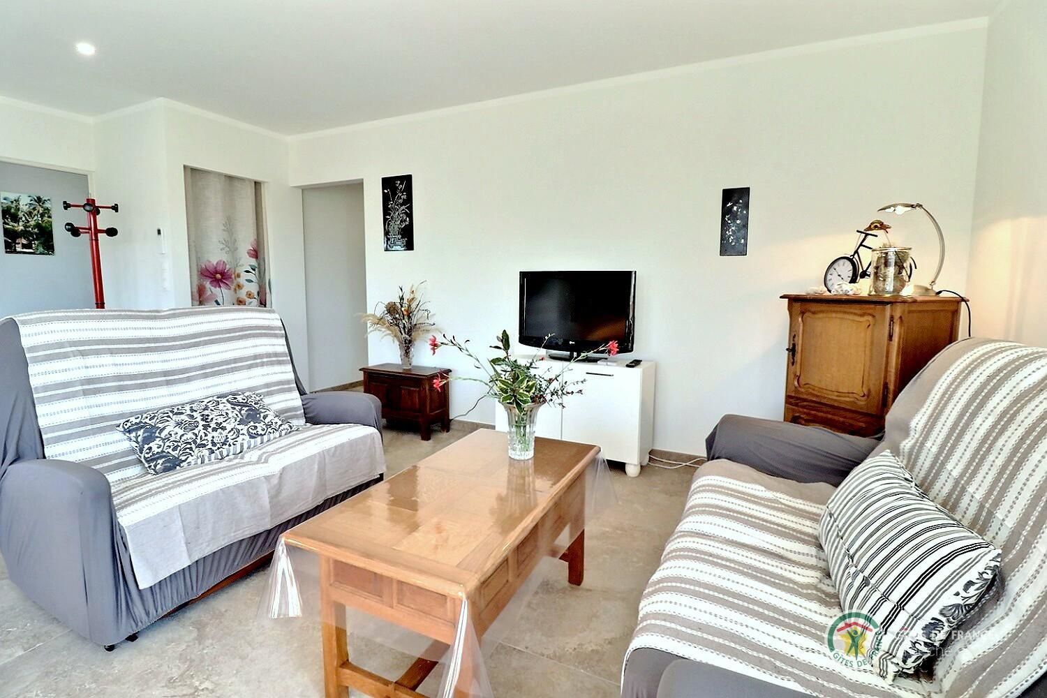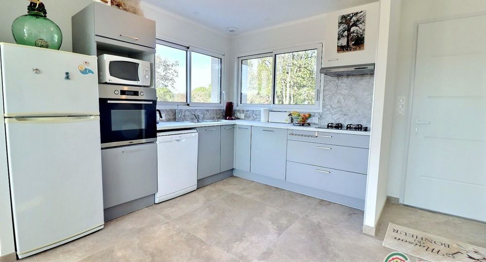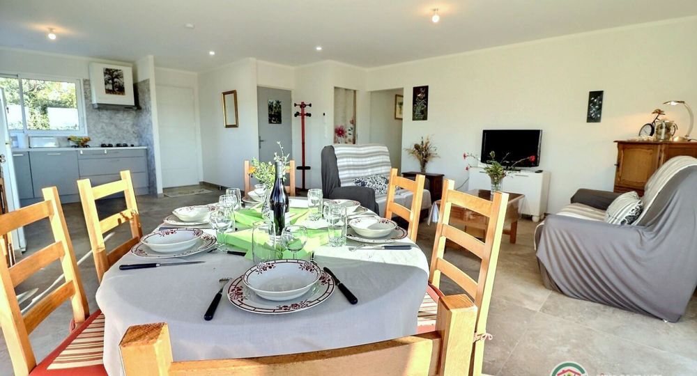 A l’intérieur, confort moderne avec pièce de vie climatisée, spacieuse et très lumineuse, cuisine intégrée et entièrement équipée, coin repas prolongé par un salon avec canapés, TV grand écran plat, Wifi.