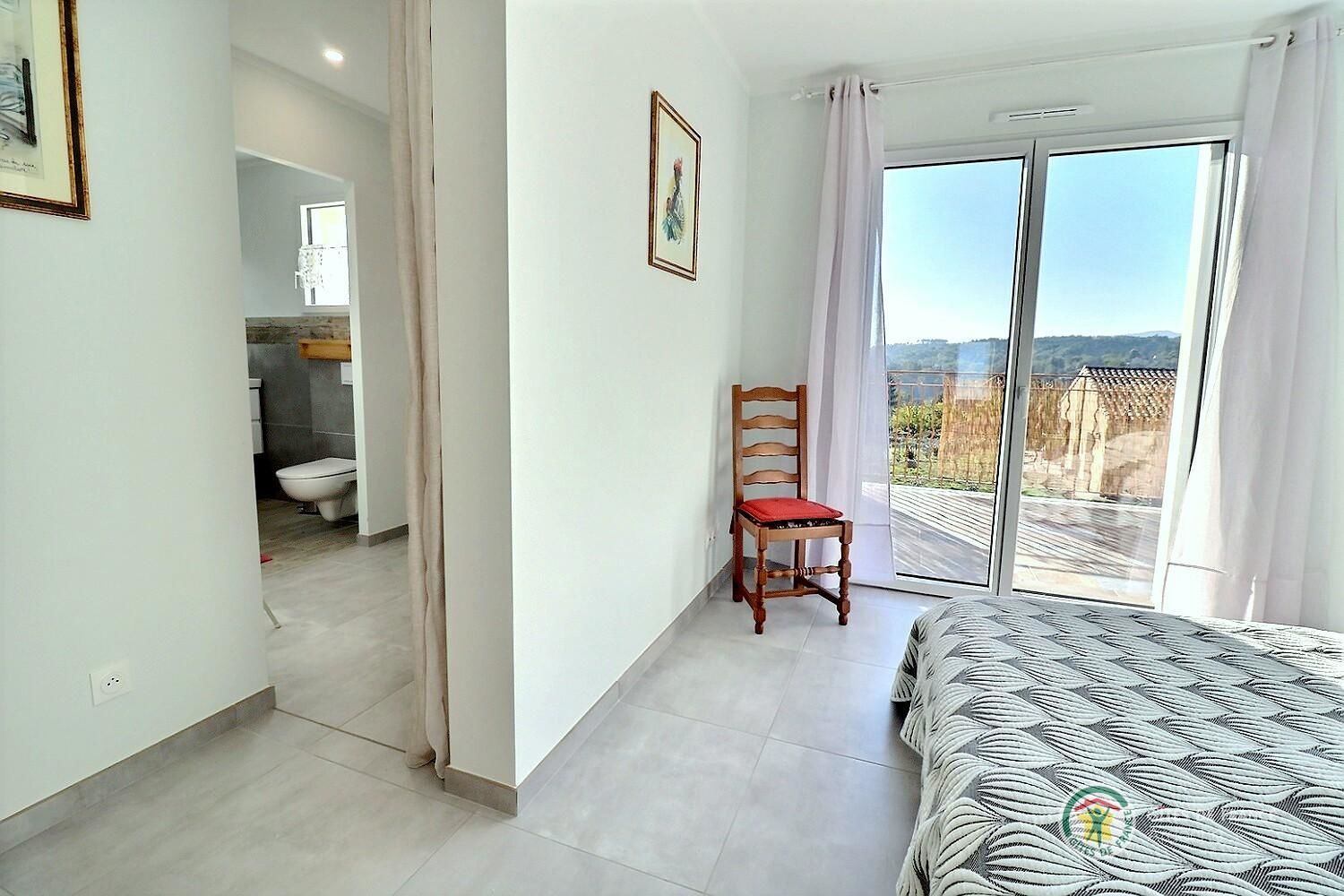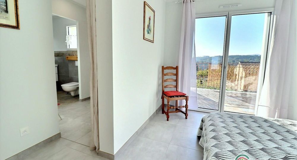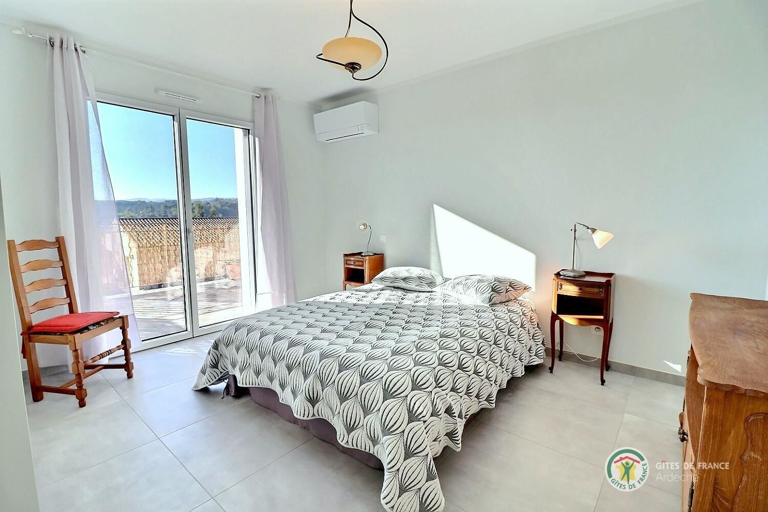 Une des chambres parentales a sa propre salle d’eau avec wc, son dressing et un accès direct sur la terrasse !