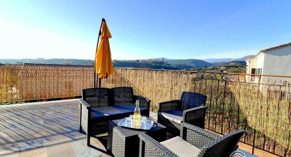 Elle dispose de 2 grandes terrasses, d’un terrain, d’un parking.
