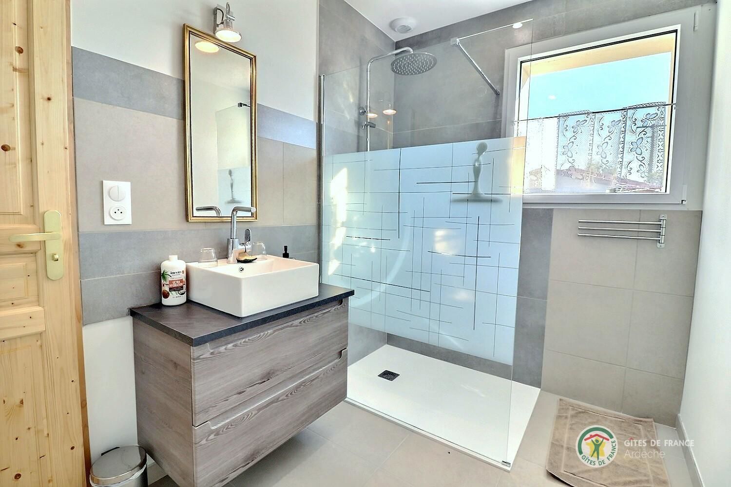 La 2e salle d’eau est équipée d’une douche à l’italienne, d’un meuble vasque. Le 2e wc est indépendant.