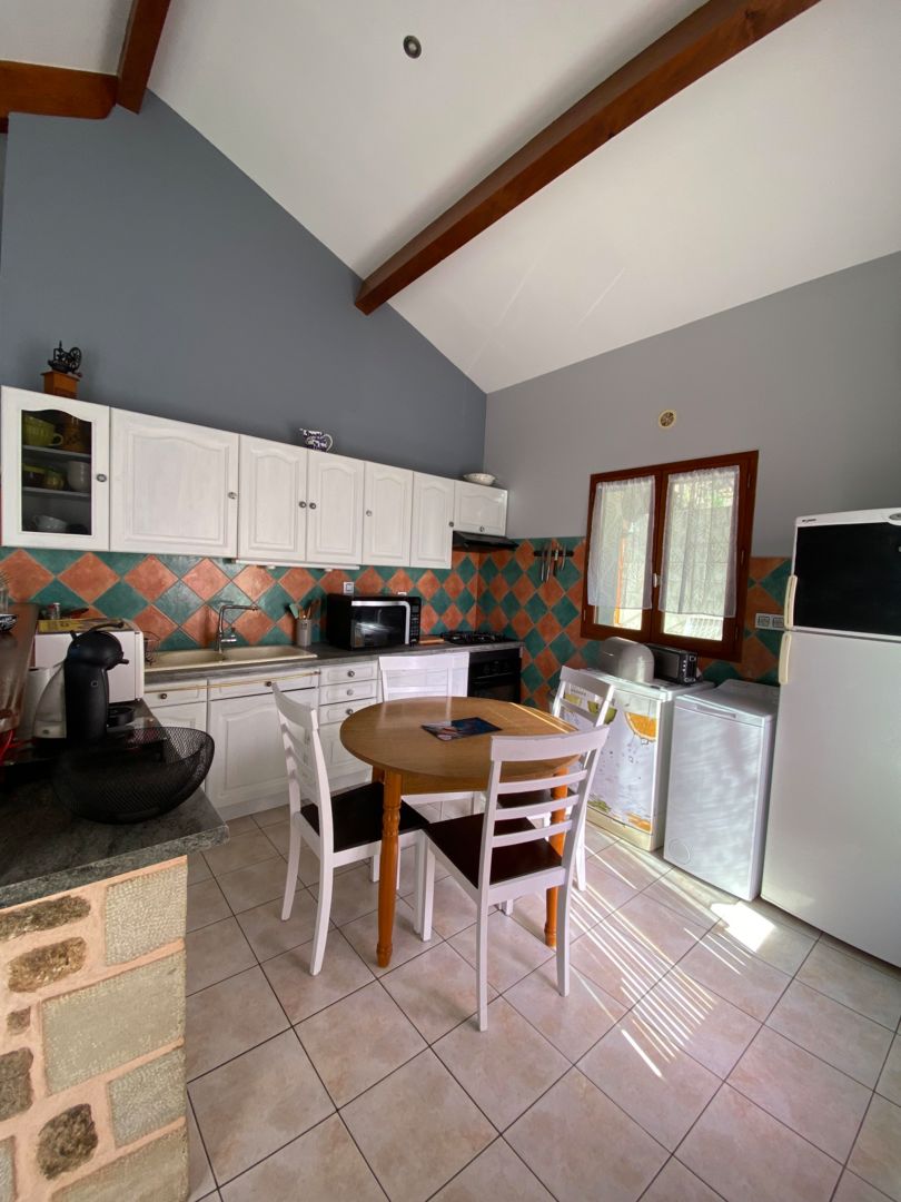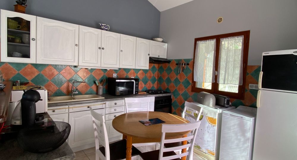 Maison indépendante de 90 m² avec 3 chambres (1 lit 160, 1 lit 140, 2 lits 90), 1 séjour, 1 cuisine avec bar, 1 wc indépendant, 1 salle de bain, 2 terrasses dont 1 couverte, ainsi qu’un extérieur clôturé pour une pause détente face au soleil. Au village : commerces,(…)
