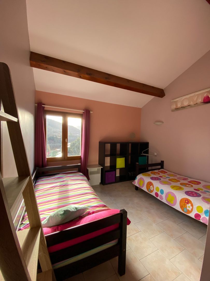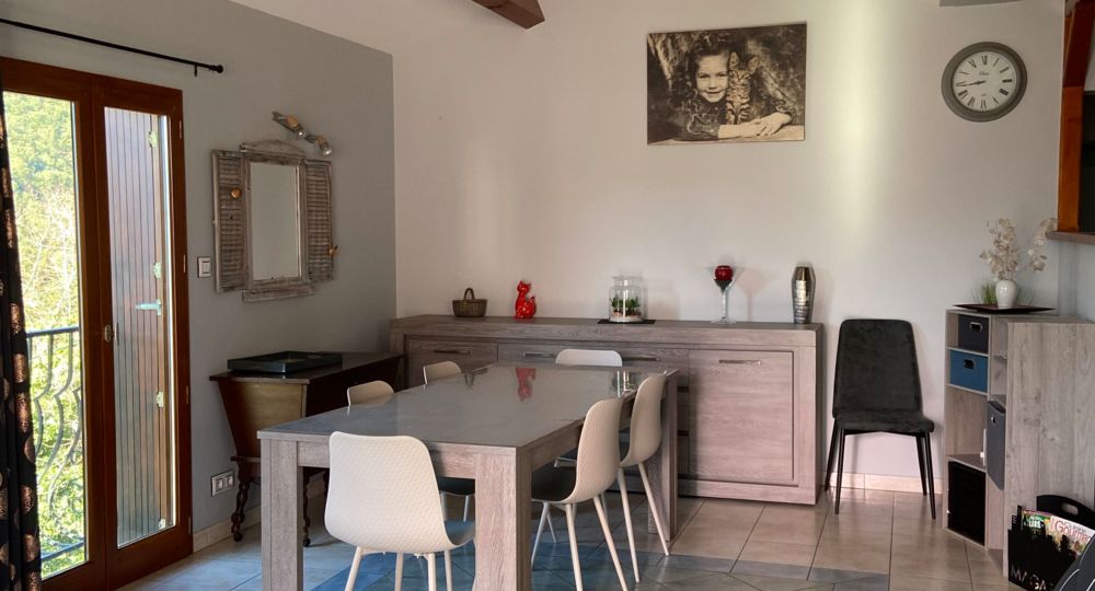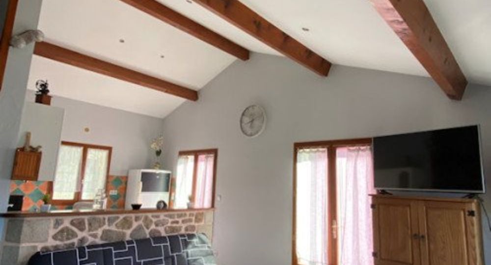 Maison indépendante de 90 m² avec 3 chambres (1 lit 160, 1 lit 140, 2 lits 90), 1 séjour, 1 cuisine avec bar, 1 wc indépendant, 1 salle de bain, 2 terrasses dont 1 couverte, ainsi qu’un extérieur clôturé pour une pause détente face au soleil. Au village : commerces, bar, restaurant, piscine intercommunale, chemin de randonnées, plage et rivière. A proximité : Vals les Bains avec ses Thermes, casino, piscine municipale.