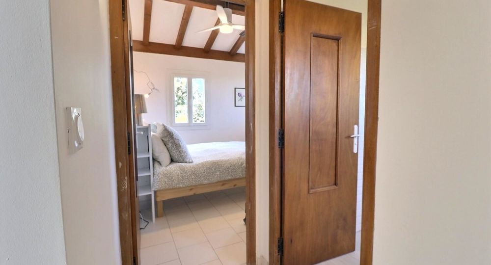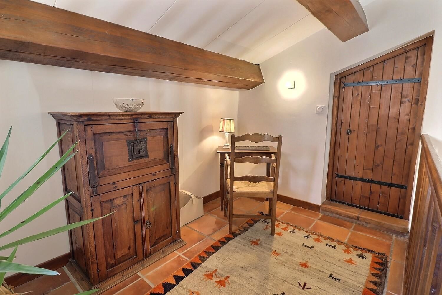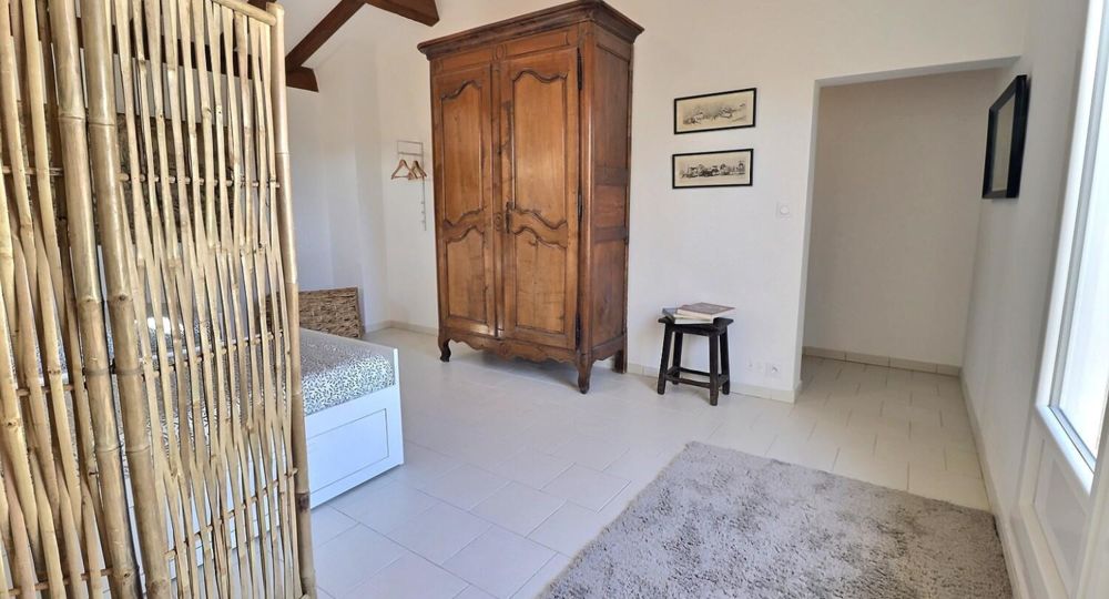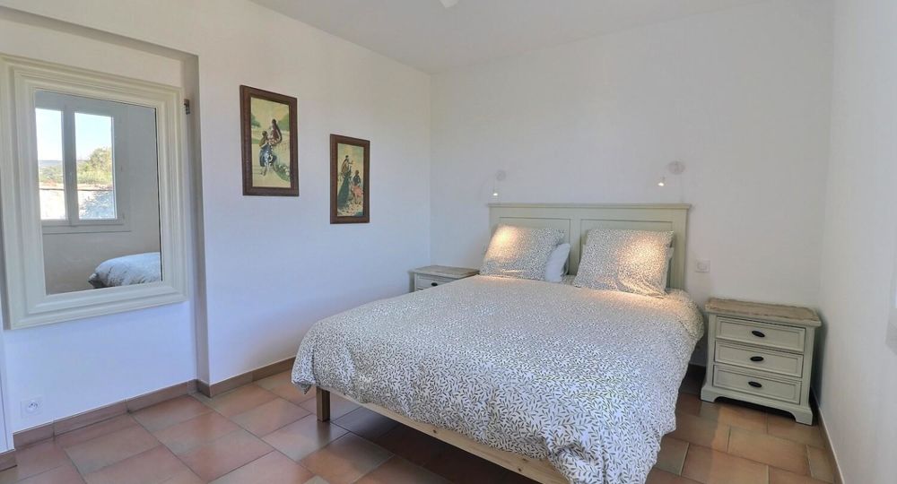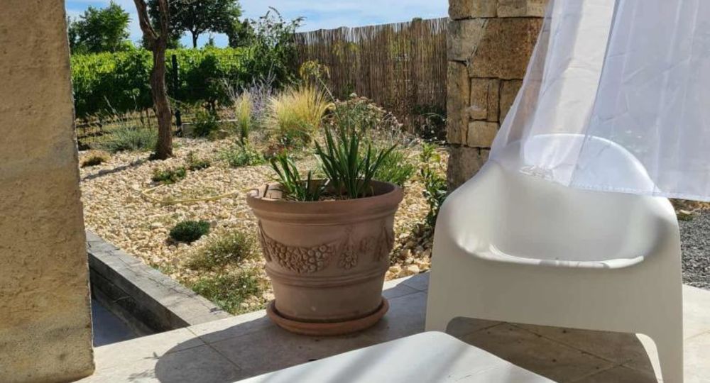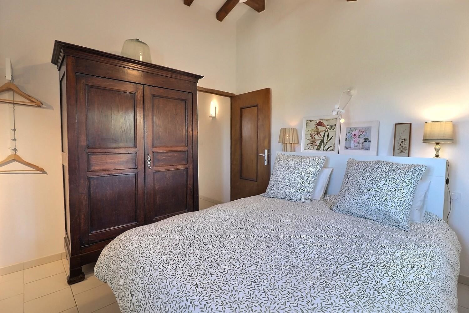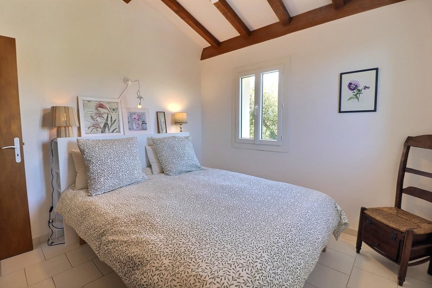 De grandes fenêtres offrent une belle vue sur le jardin ou l’extérieur. L’atmosphère générale est calme et accueillante. D’un côté, l’espace salon avec des canapés confortables, (cheminée en déco), de l’autre, un coin repas. La cuisine entièrement équipée est fonctionnelle. Pour conserver le charme local de l’Ardèche-Méridionale, quelques éléments de mobilier ancien rappellent l’histoire de la région et apportent une touche de caractère à cet espace moderne. Un 2e salon pour écouter de la musique ou lire au calme, avec accès sur la petite terrasse couverte. Une grande chambre (lit en 160) décorée avec des tons apaisants et un mobilier élégant. Salle d’eau (douche à l’italienne), wc indépendant.