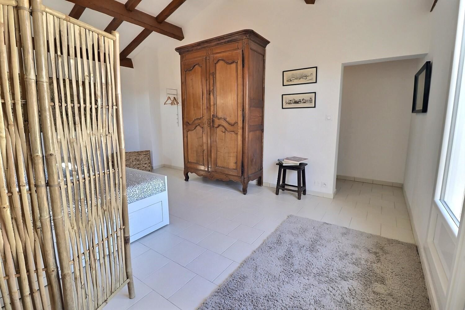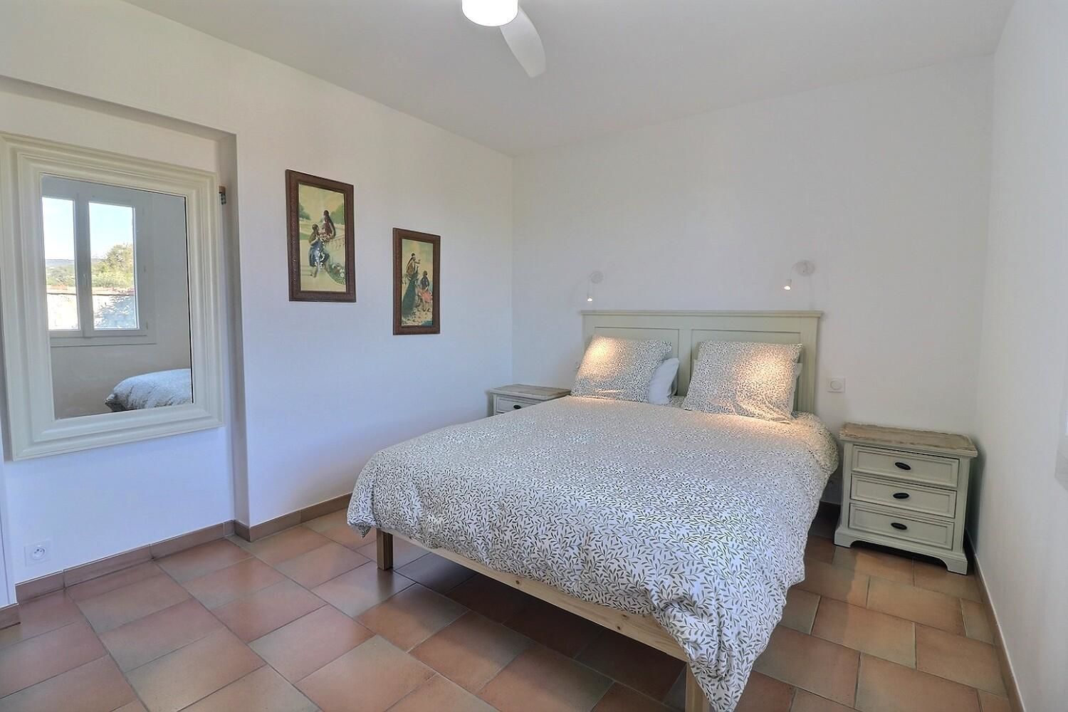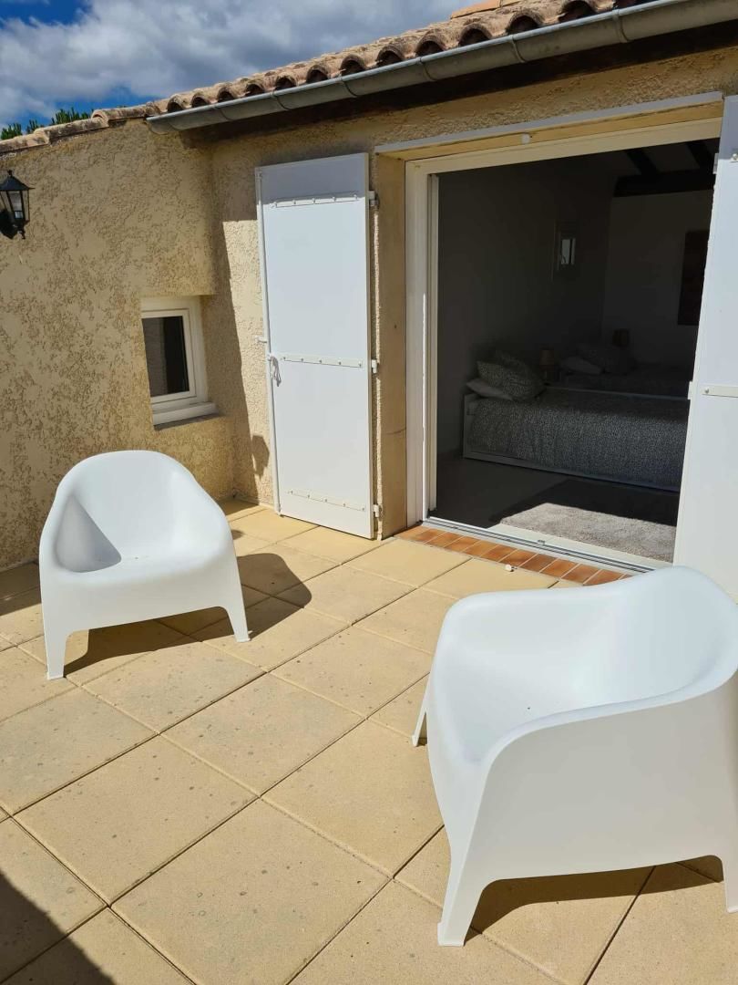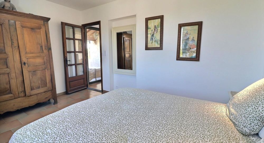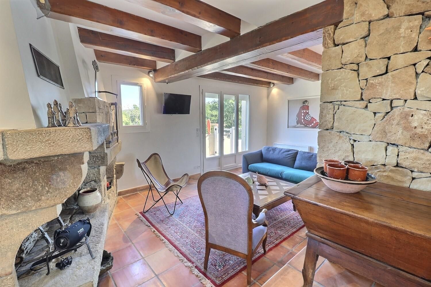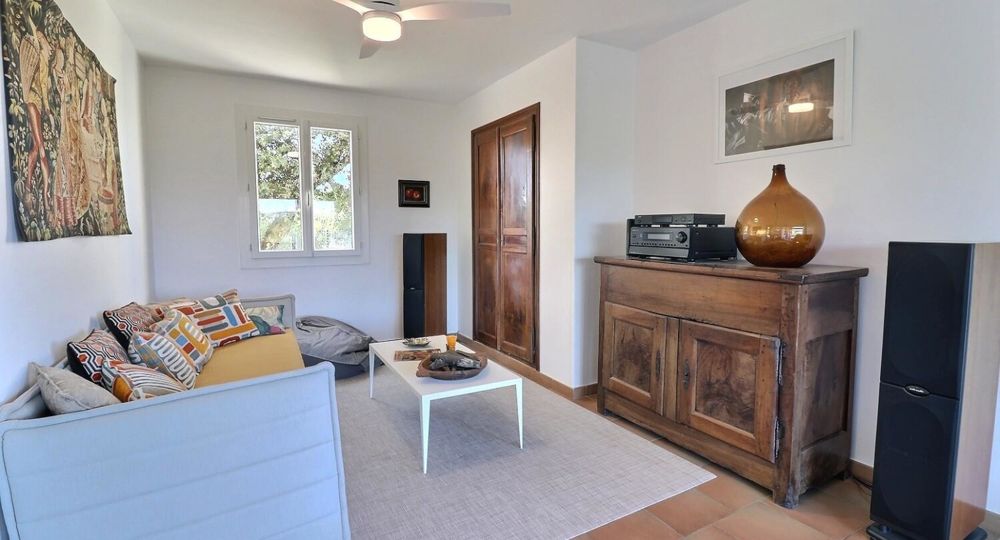 De grandes fenêtres offrent une belle vue sur le jardin ou l’extérieur. L’atmosphère générale est calme et accueillante. D’un côté, l’espace salon avec des canapés confortables, (cheminée en déco), de l’autre, un coin repas. La cuisine entièrement équipée est fonctionnelle. Pour conserver le charme local de l’Ardèche-Méridionale, quelques éléments de mobilier ancien rappellent l’histoire de la région et apportent une touche de caractère à cet espace moderne. Un 2e salon pour écouter de la musique ou lire au calme, avec accès sur la petite terrasse couverte. Une grande chambre (lit en 160) décorée avec des tons apaisants et un mobilier élégant. Salle d’eau (douche à l’italienne), wc indépendant.