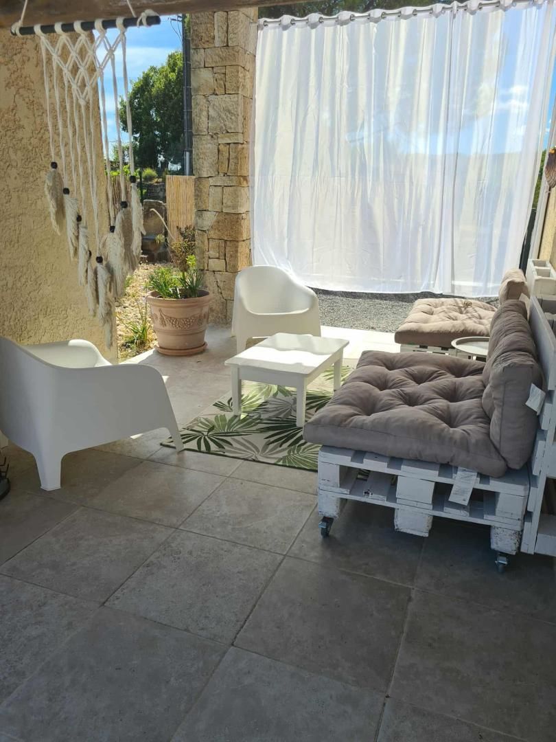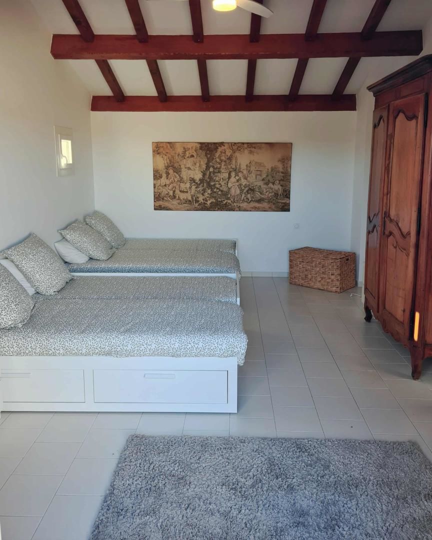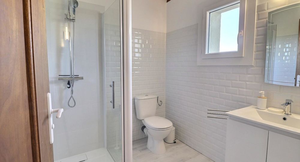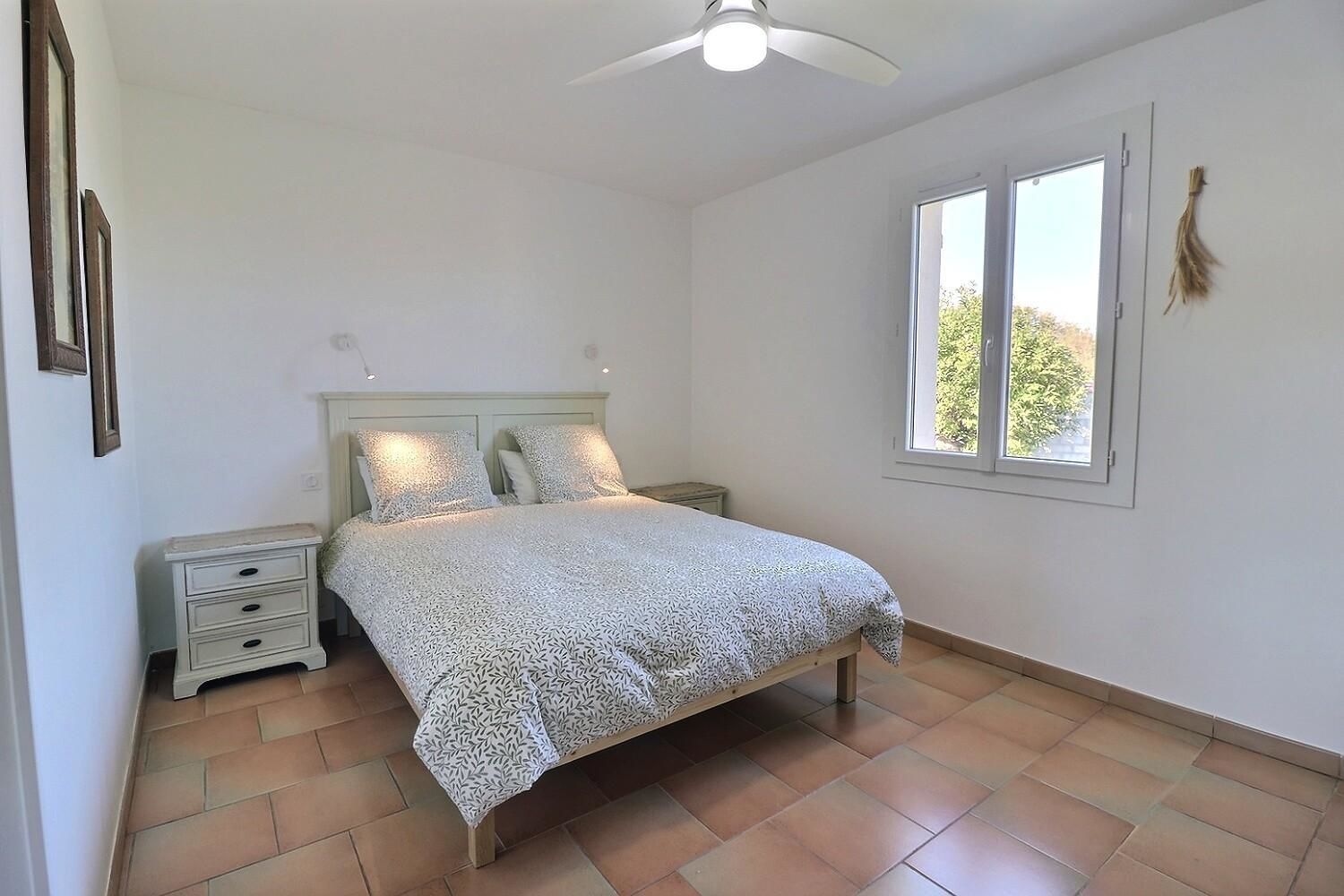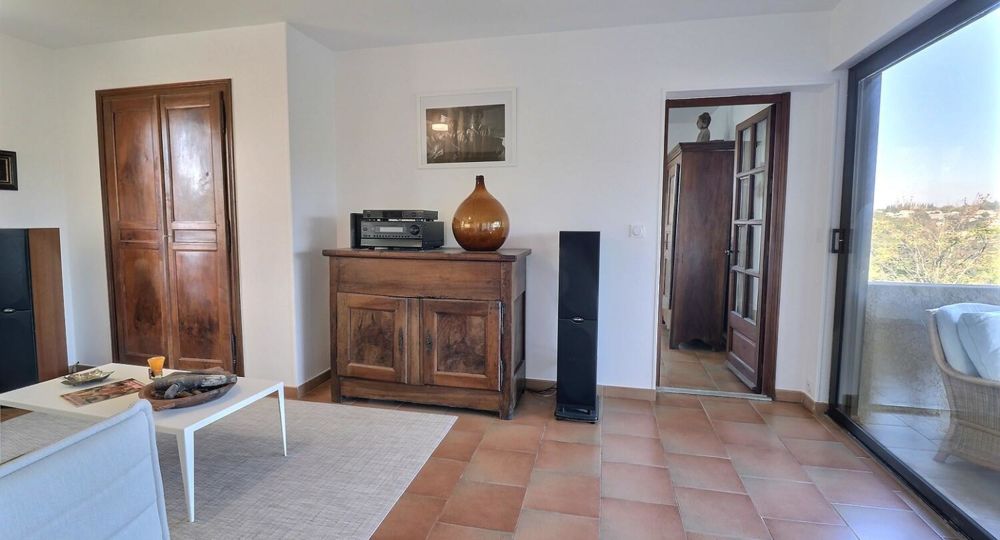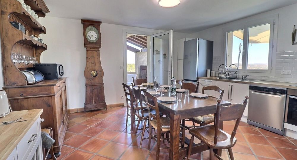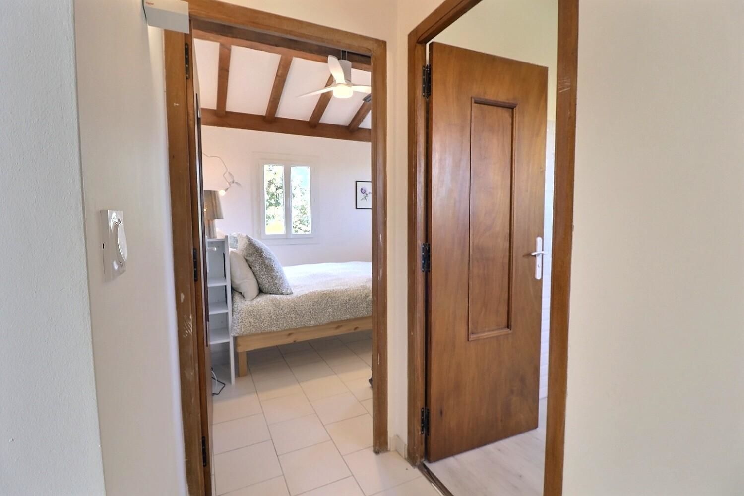 De grandes fenêtres offrent une belle vue sur le jardin ou l’extérieur. L’atmosphère générale est calme et accueillante. D’un côté, l’espace salon avec des canapés confortables, (cheminée en déco), de l’autre, un coin repas. La cuisine entièrement équipée est fonctionnelle. Pour conserver le charme local de l’Ardèche-Méridionale, quelques éléments de mobilier ancien rappellent l’histoire de la région et apportent une touche de caractère à cet espace moderne. Un 2e salon pour écouter de la musique ou lire au calme, avec accès sur la petite terrasse couverte. Une grande chambre (lit en 160) décorée avec des tons apaisants et un mobilier élégant. Salle d’eau (douche à l’italienne), wc indépendant.
