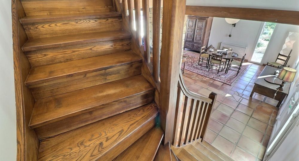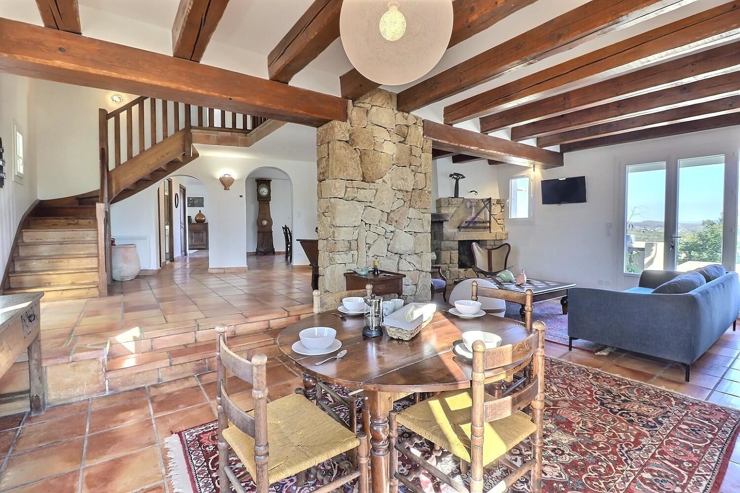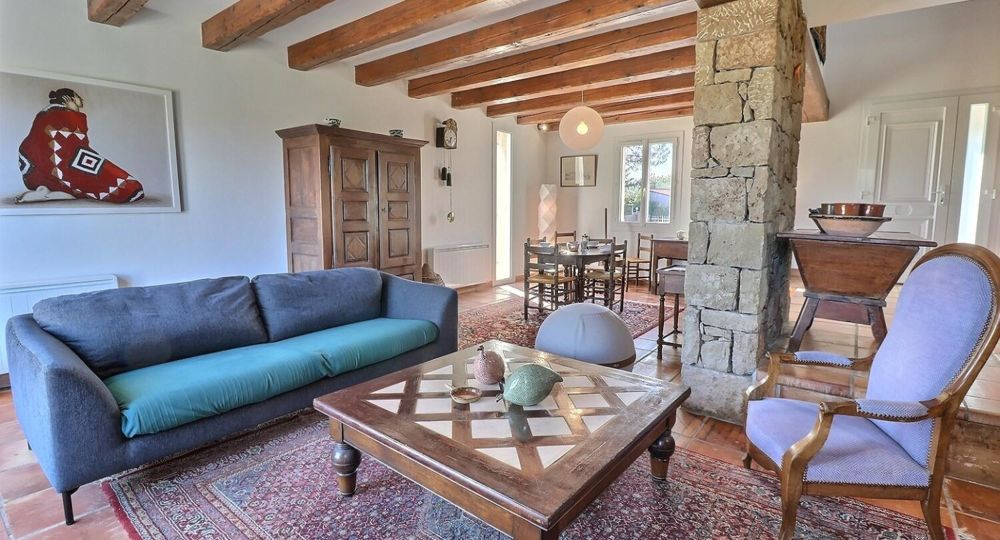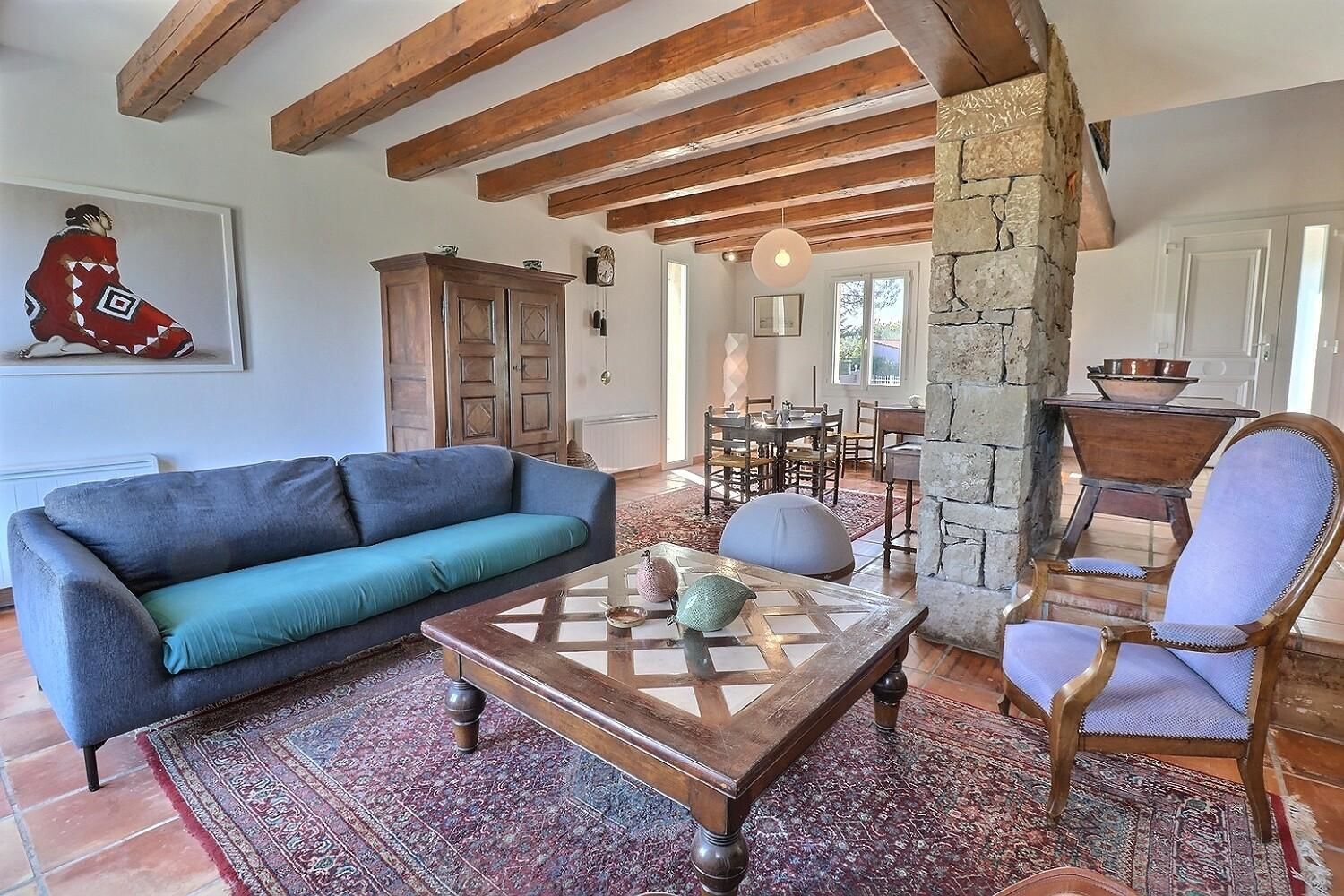 La maison est sur 2 niveaux. Au RDC, pièce de vie avec son espace ouvert et accueillant, où la lumière circule librement.