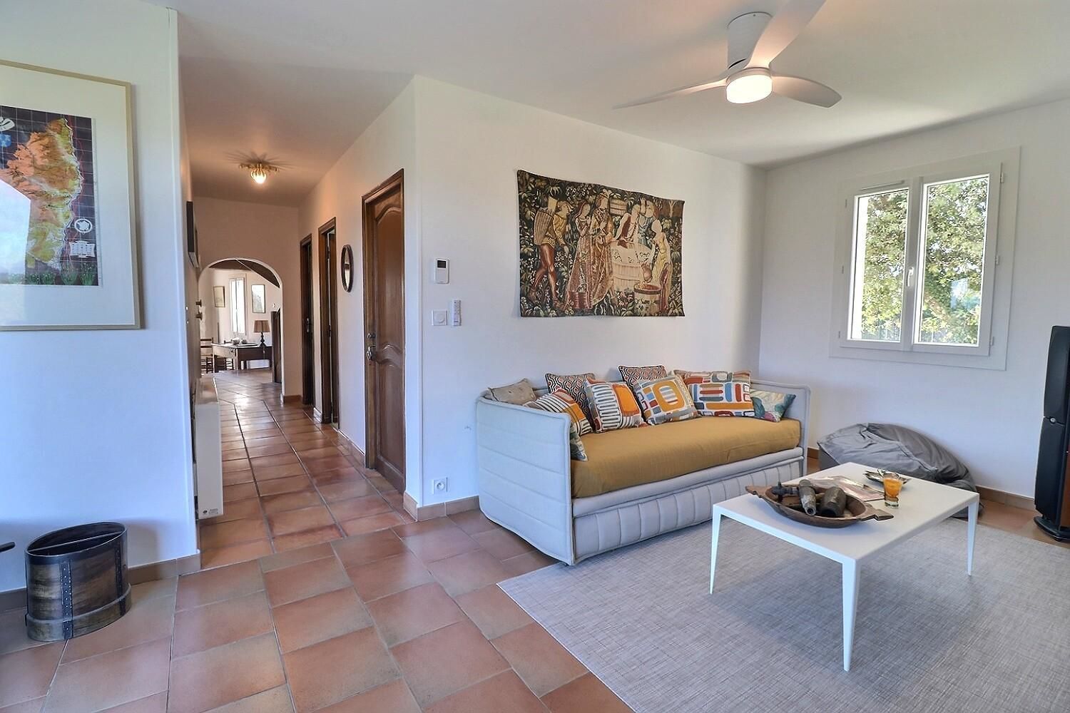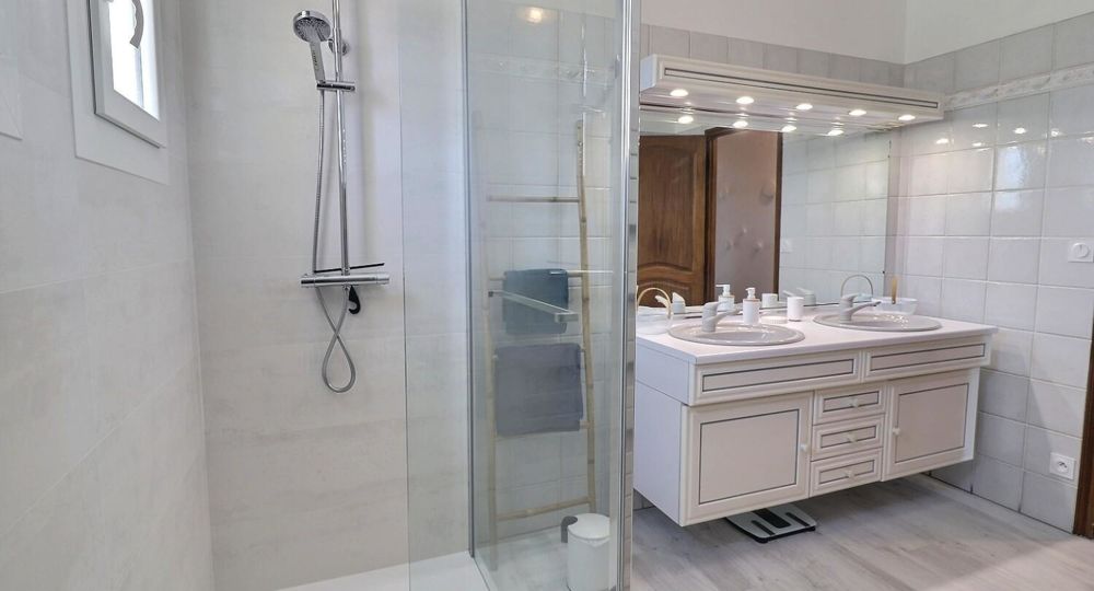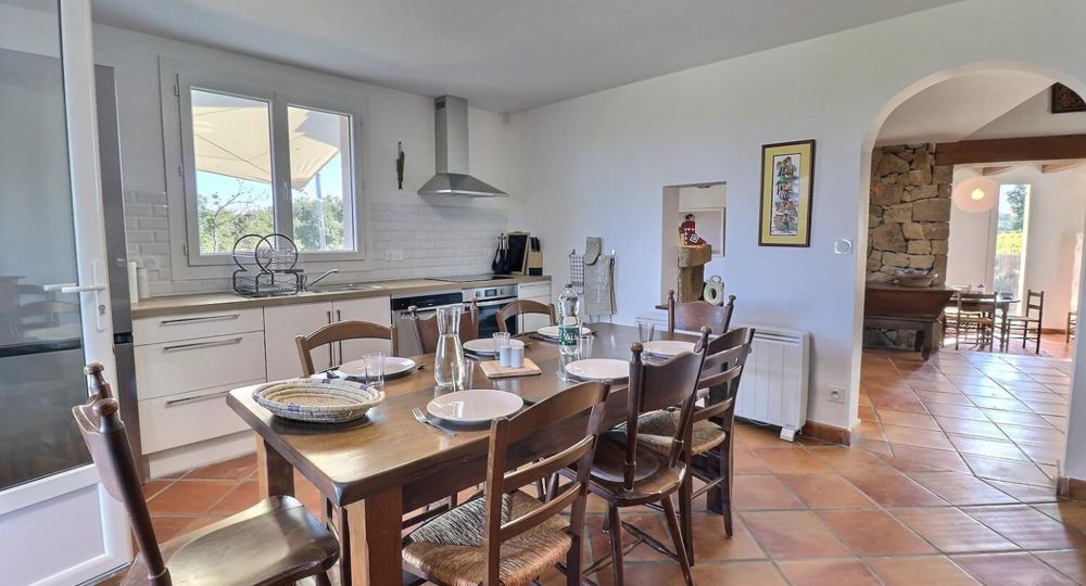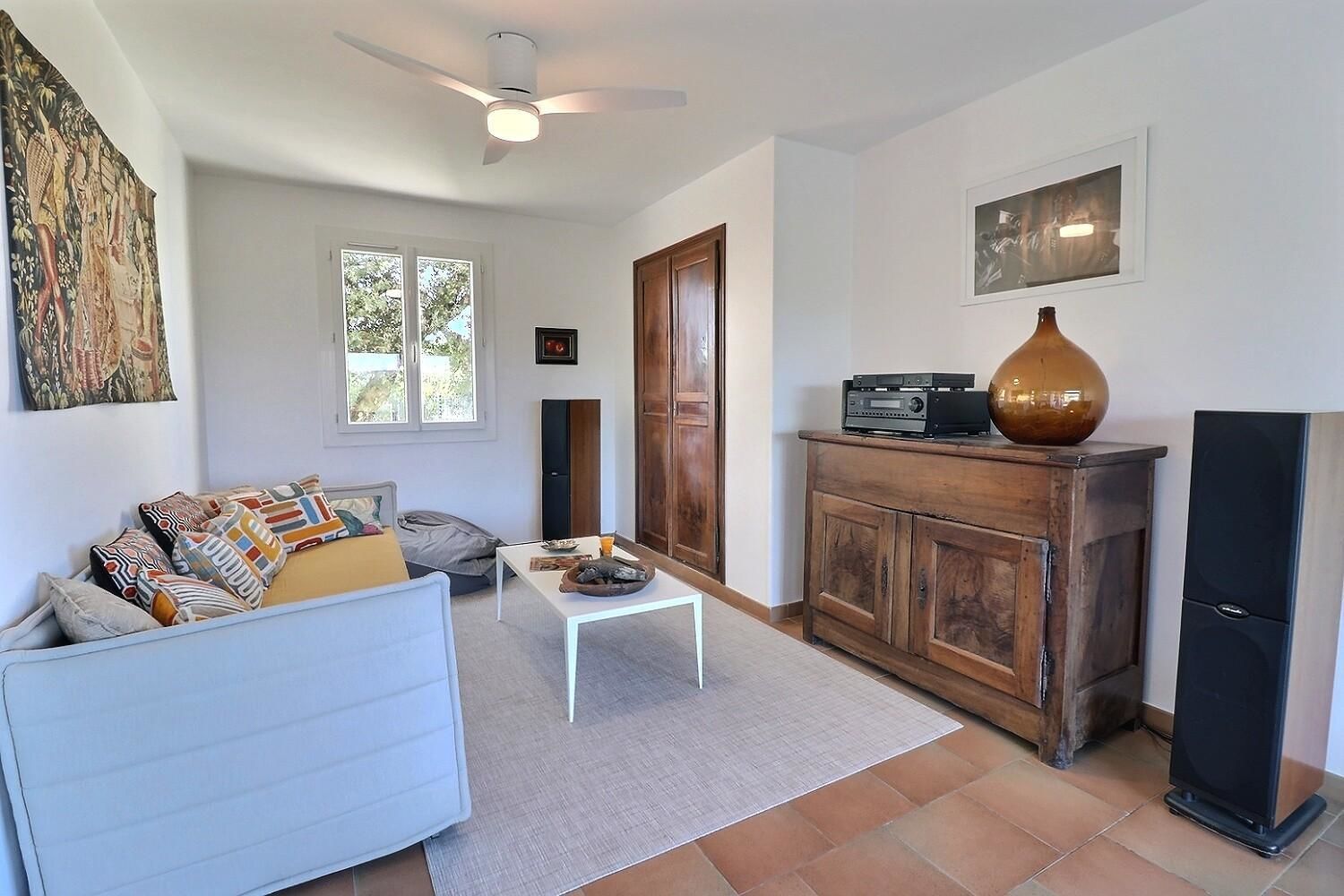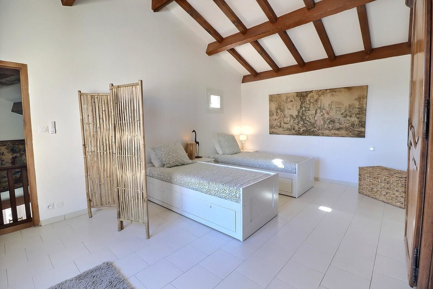 À l’extérieur, jardin, piscine entourée de chaises longues pour vous prélasser au soleil. Coin détente avec fauteuils et tables basses pour profiter du calme ambiant. Espace repas sur les terrasses accessibles depuis la cuisine. Ici, vous pourrez savourer vos repas en plein air, à l’ombre des voiles d’ombrage.