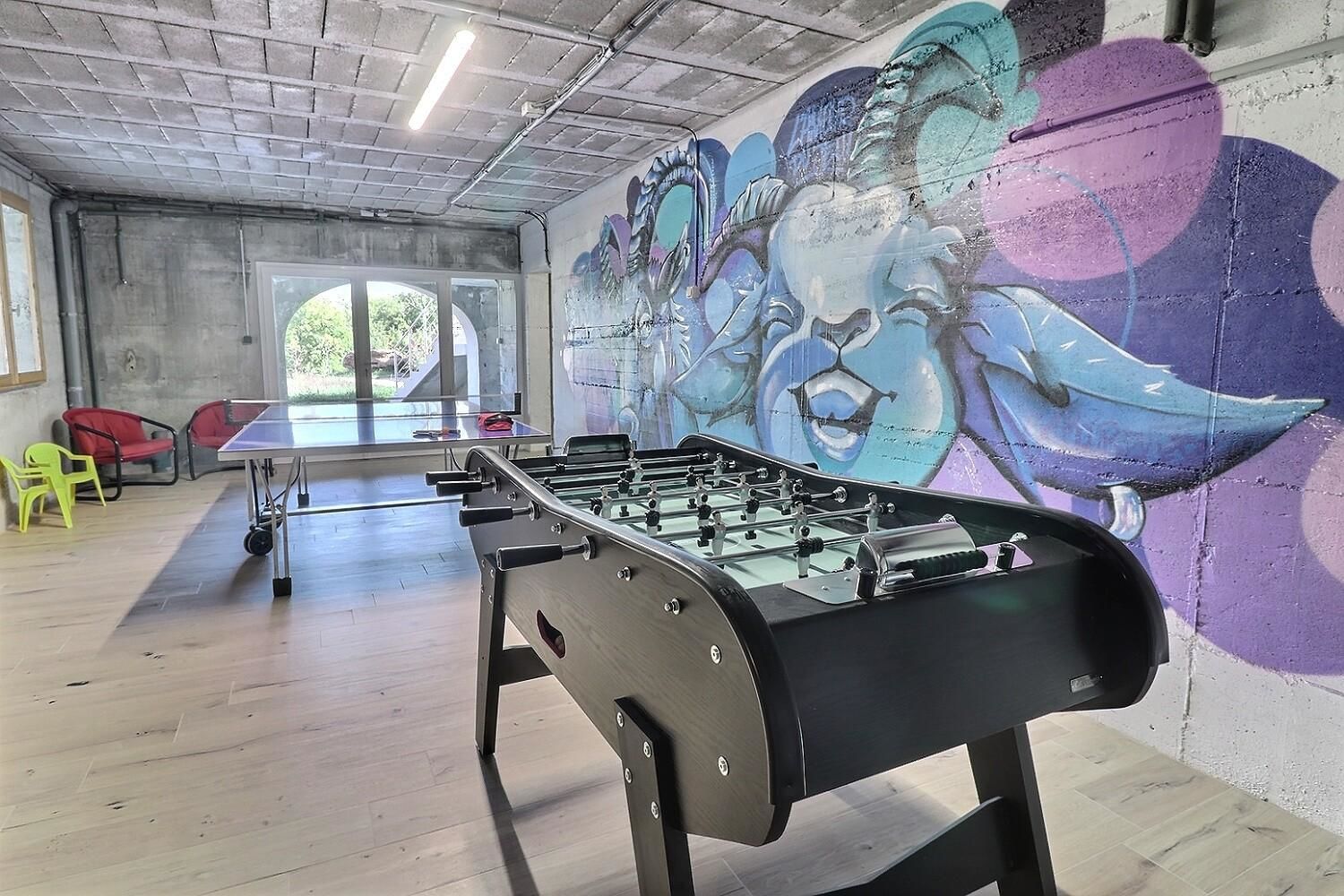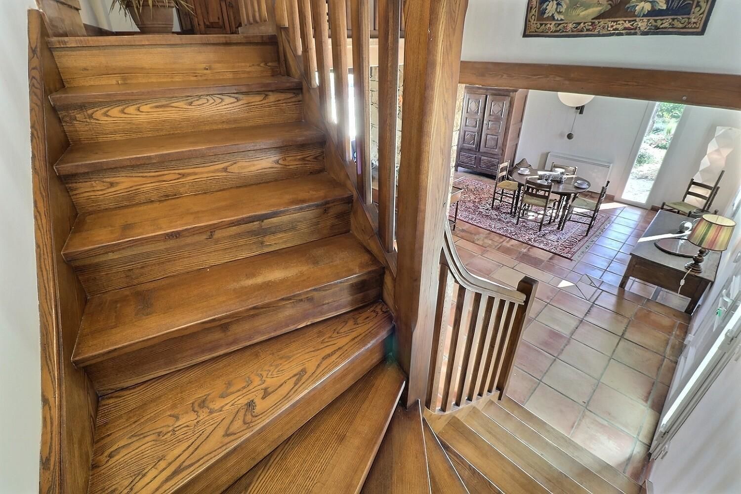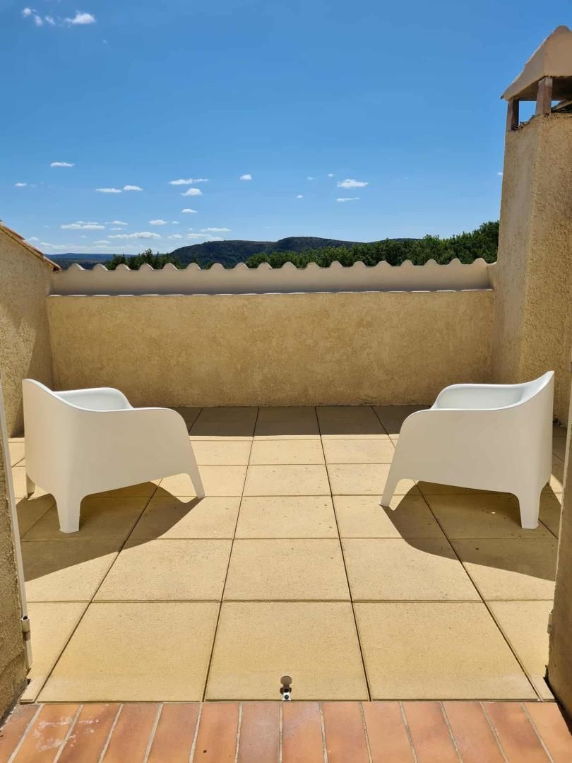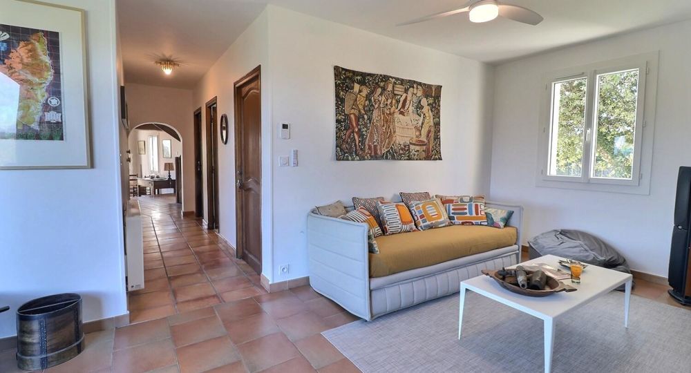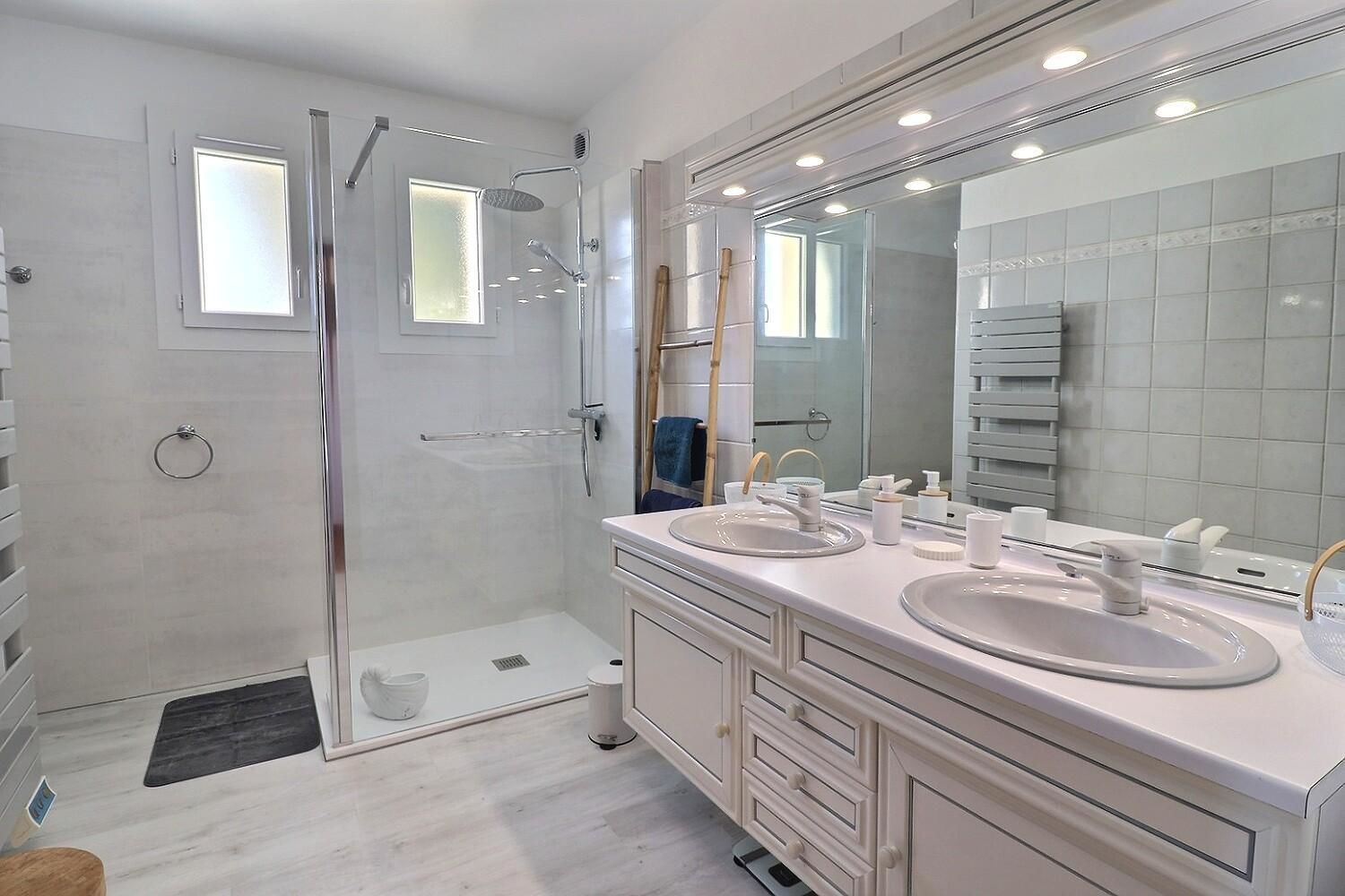 À l’extérieur, jardin, piscine entourée de chaises longues pour vous prélasser au soleil. Coin détente avec fauteuils et tables basses pour profiter du calme ambiant. Espace repas sur les terrasses accessibles depuis la cuisine. Ici, vous pourrez savourer vos repas en plein air, à l’ombre des voiles d’ombrage.