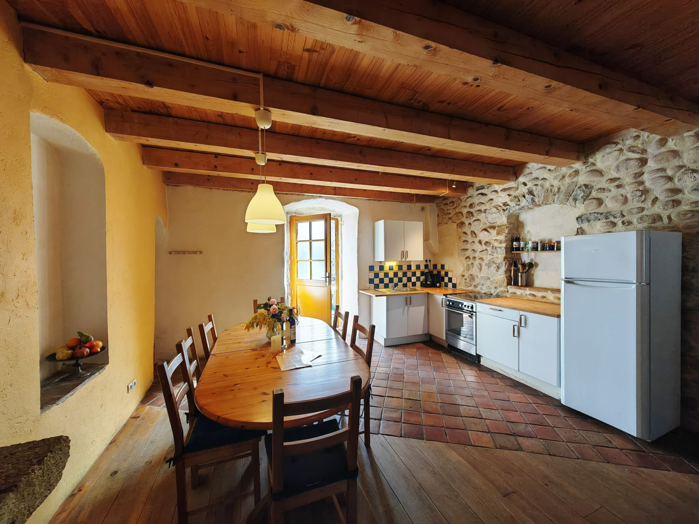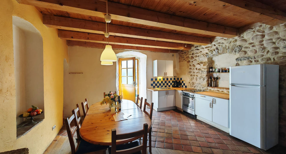 Gîte pour 5-7 personnes situé dans une ferme et ancienne magnanerie du 17ème siècle, entourée d’un parc avec des arbres centenaires, un ruisseau, des prés avec des animaux, une piscine et à 5 minutes à pied de la rivière. Aubenas 3km
