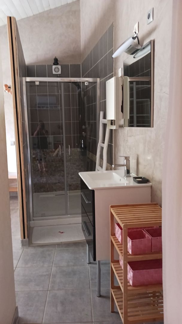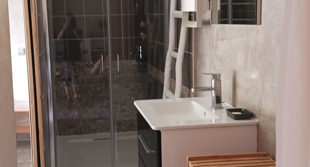 Salle d’eau : attenante à la chambre, elle dispose d’une douche à l’italienne moderne et spacieuse.