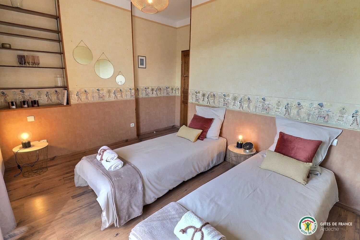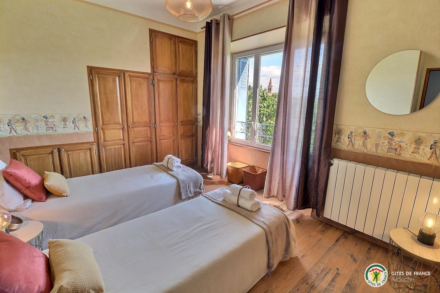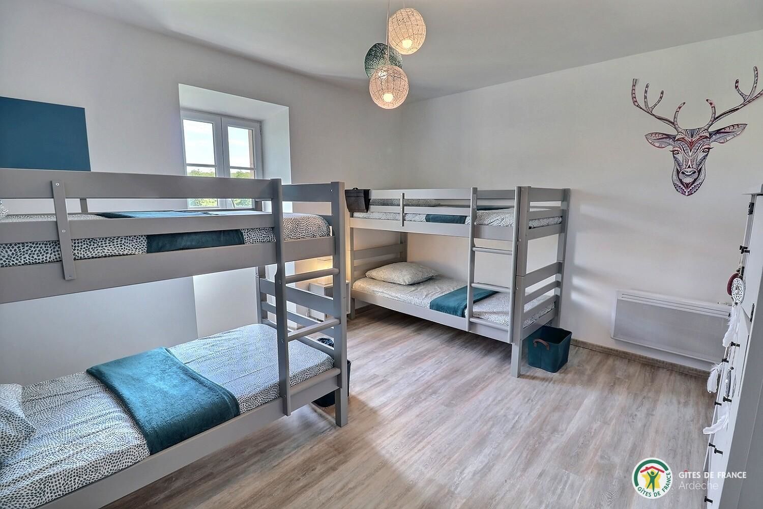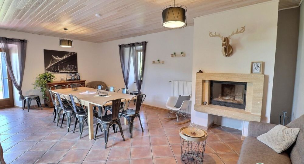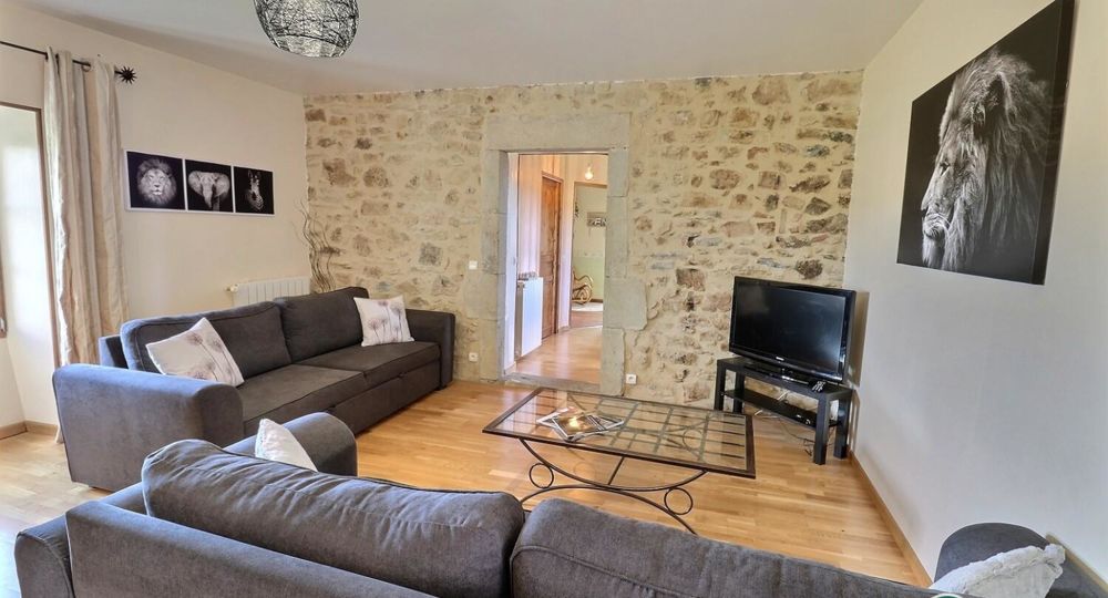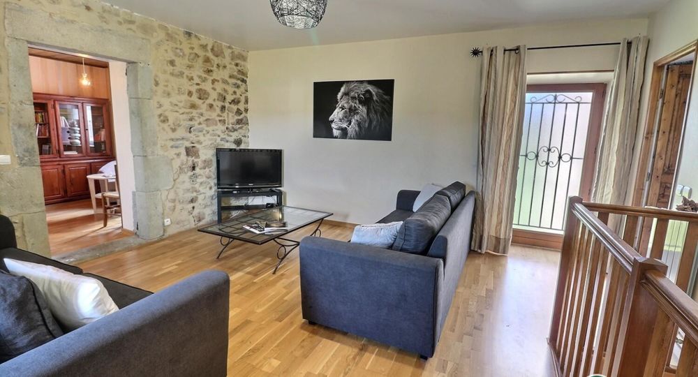 Situé au cœur du village, vous disposerez d’un grand jardin entièrement clos d’environ 3000m² pour vous détendre au calme, à l’ombre d’un arbre ou faire une partie de ping-pong ou badminton. La grande piscine sécurisée (non chauffée), vous permettra de vous rafraichir ou lire au bord de l’eau. Elle est aménagée avec une cuisine d’été équipée pour d’agréables repas en extérieur. Vous trouverez également une terrasse de chaque côté de la maison, pour les petit-déjeuners et autres repas, barbecues. Cette maison en pierre, sur 2 niveaux, comprend au 1er étage, une salle à manger, séjour avec cheminée (bois fourni), une cuisine équipée, une salle de bain et un WC indépendant. Vous trouverez 2 chambres avec lit en 160 (modulable en 2 lits en 80 sur demande) et une chambre avec un lit en 140. Au 2ème étage, vous pourrez profiter du salon avec canapé et TV et lire ou jouer dans le second petit salon. Une 2ème salle d’eau est à disposition avec douche et WC. La 4ème chambre est équipée d’un lit en 140 et la dernière est idéale pour les enfants, avec 4 lits en 90 dont 2 superposés. Pour votre confort, les lits sont faits à l’arrivée et les serviettes de toilettes sont fournies, de quoi passer un très bon séjour !