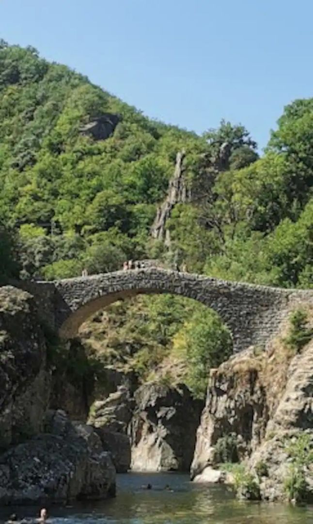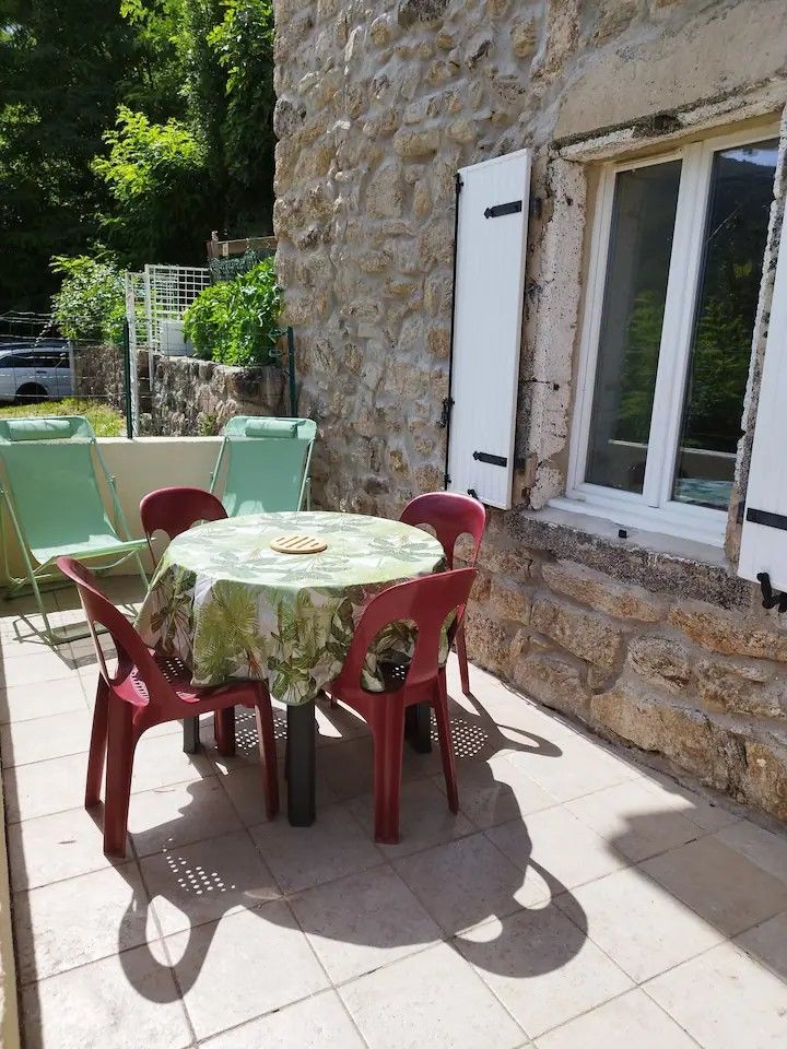 Petite maison en pierre charmante. Bien située, près de la place du village et de ses commodités. Coins de baignade à proximité dont le fameux Pont du Diable et sa plage. 2 chambres à l’étage, une avec lit en 160 et une avec deux lits en 90.
