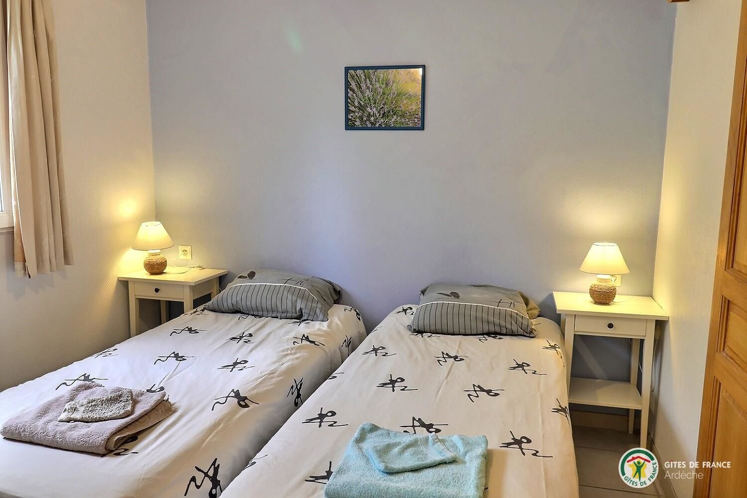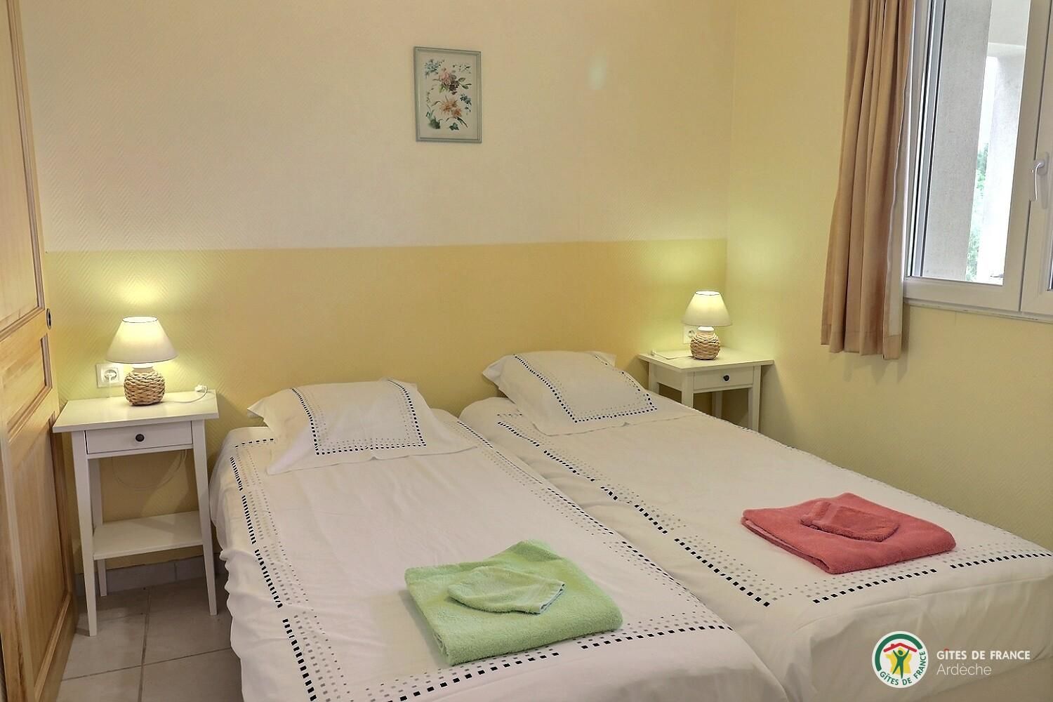 Cette maison indépendante comprend deux gîtes « Hirondelle » et « Papillon ». Chaque gîte disposent de sa terrasse privative, couverte et d’un espace extérieur privé, idéal pour se détendre au soleil ou à l’ombre d’un arbre. Pour se rafraichir, vous pourrez profiter de la piscine, ouverte de mai à septembre et à partager avec les propriétaires et le second gîte (4 personnes). A l’intérieur, vous trouverez une pièce de vie avec espace salon équipé d’un canapé et TV, un séjour aménagé et cuisine ouverte. Les deux chambres comprennent 2 lits en 90 (modulables sur demande) avec placard de rangements. La salle d’eau est équipée d’une douche et les WC sont indépendants. Un espace commun aux 2 gîtes est en libre accès pour utiliser le lave-linge. Location de draps et serviettes possible en supplément.