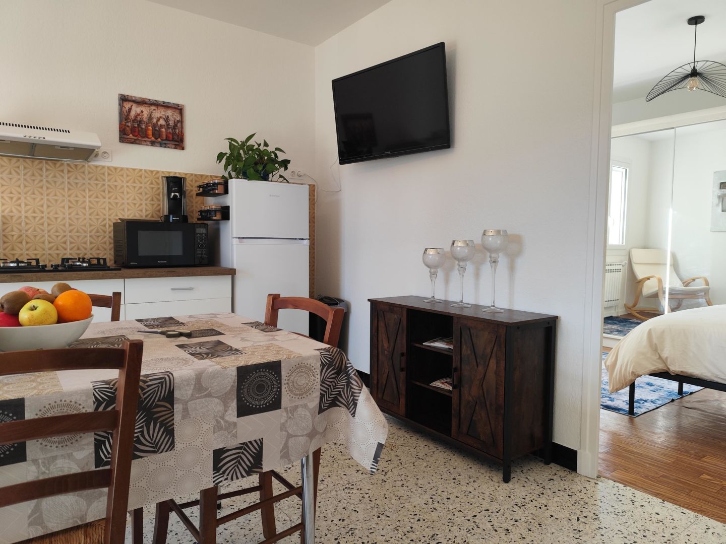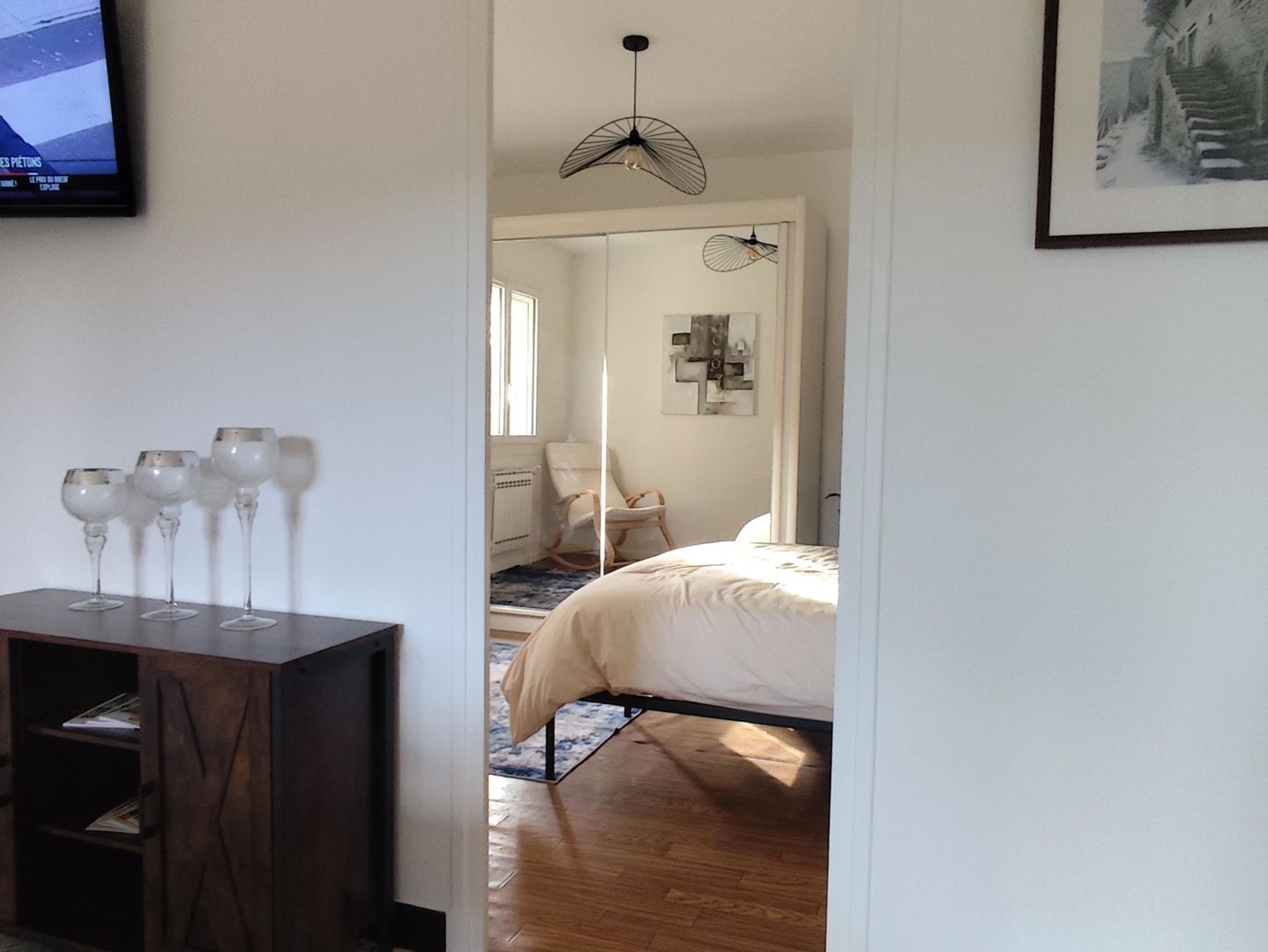 Votre logement Fraîchement rénové, sans vis-à-vis et au calme, ce gîte indépendant de plain-pied (40 m²) se trouve à seulement 5 à 10 minutes à pied du centre-ville. Baigné de lumière et entouré de verdure grâce à ses trois fenêtres, il s’ouvre sur une terrasse exposée à l’Est, idéale pour savourer votre petit déjeuner, et sur le jardin au Sud, équipé de transats pour se détendre.