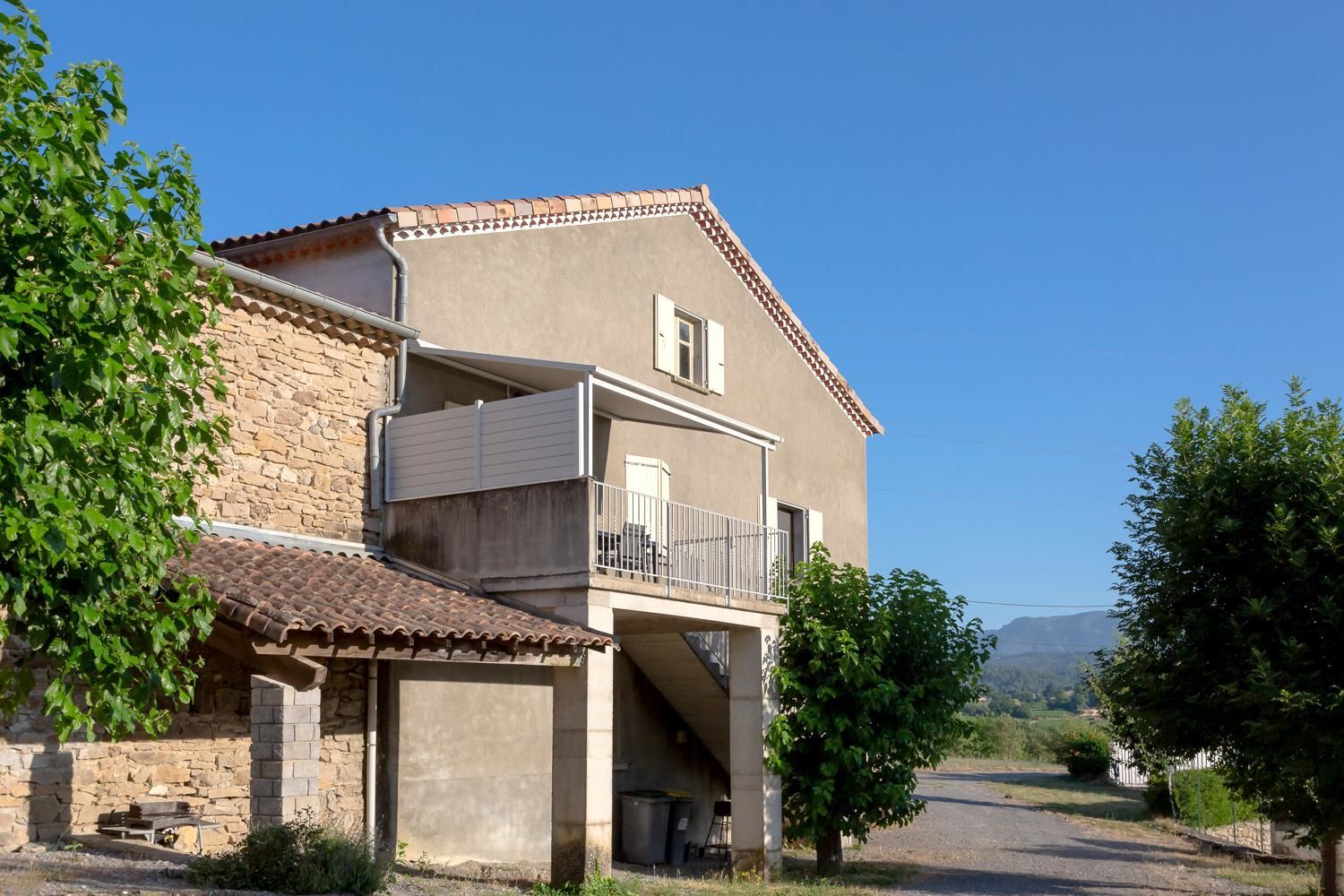Aubenas, Largentière. Après avoir passé La Chapelle S/s Aubenas, passer Prends Toi Garde. 300m après Peinture Ayglon, prendre la petite route à gauche. Rester sur la droite à l’épingle et continuer jusqu’au bout, le gite est là.
