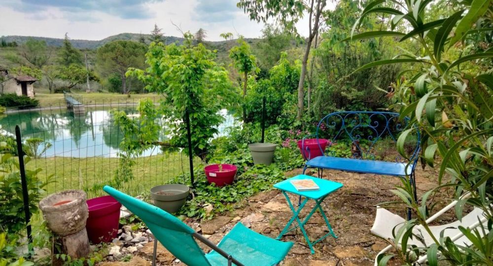 Faites une pause et détendez-vous dans cette petite maison au milieu des oliviers avec une jolie vue sur un étang.
