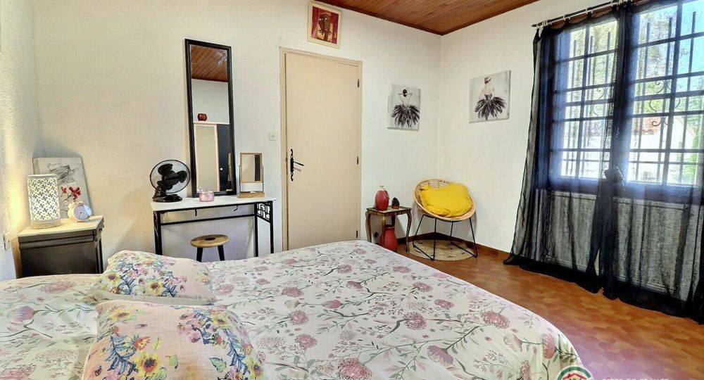 Grande chambre (lit en 140) avec moustiquaire à la fenêtre.