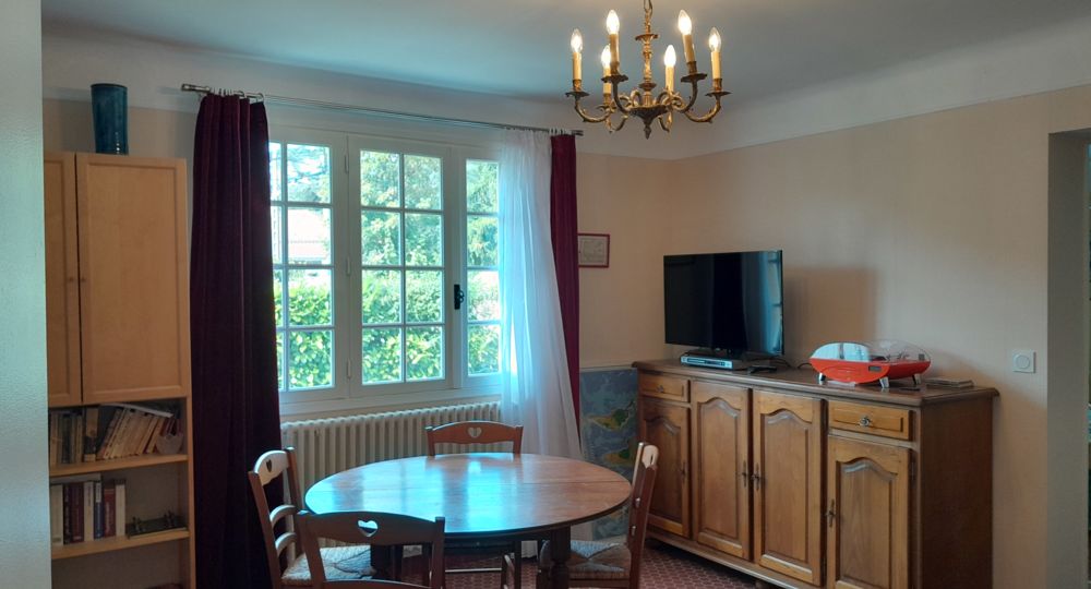 Appartement deux-pièces de 52 m² en rez-de-chaussée d’une villa occupée au 1er étage par le couple propriétaire, avec accès jardin et table de jardin.A 300 m tous commerces. Tarif indiqué réservé aux curistes.
