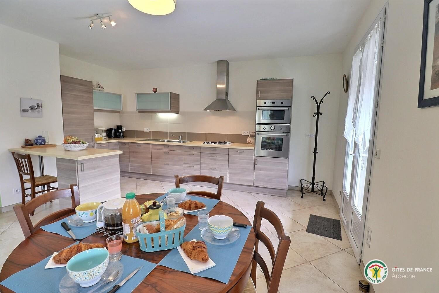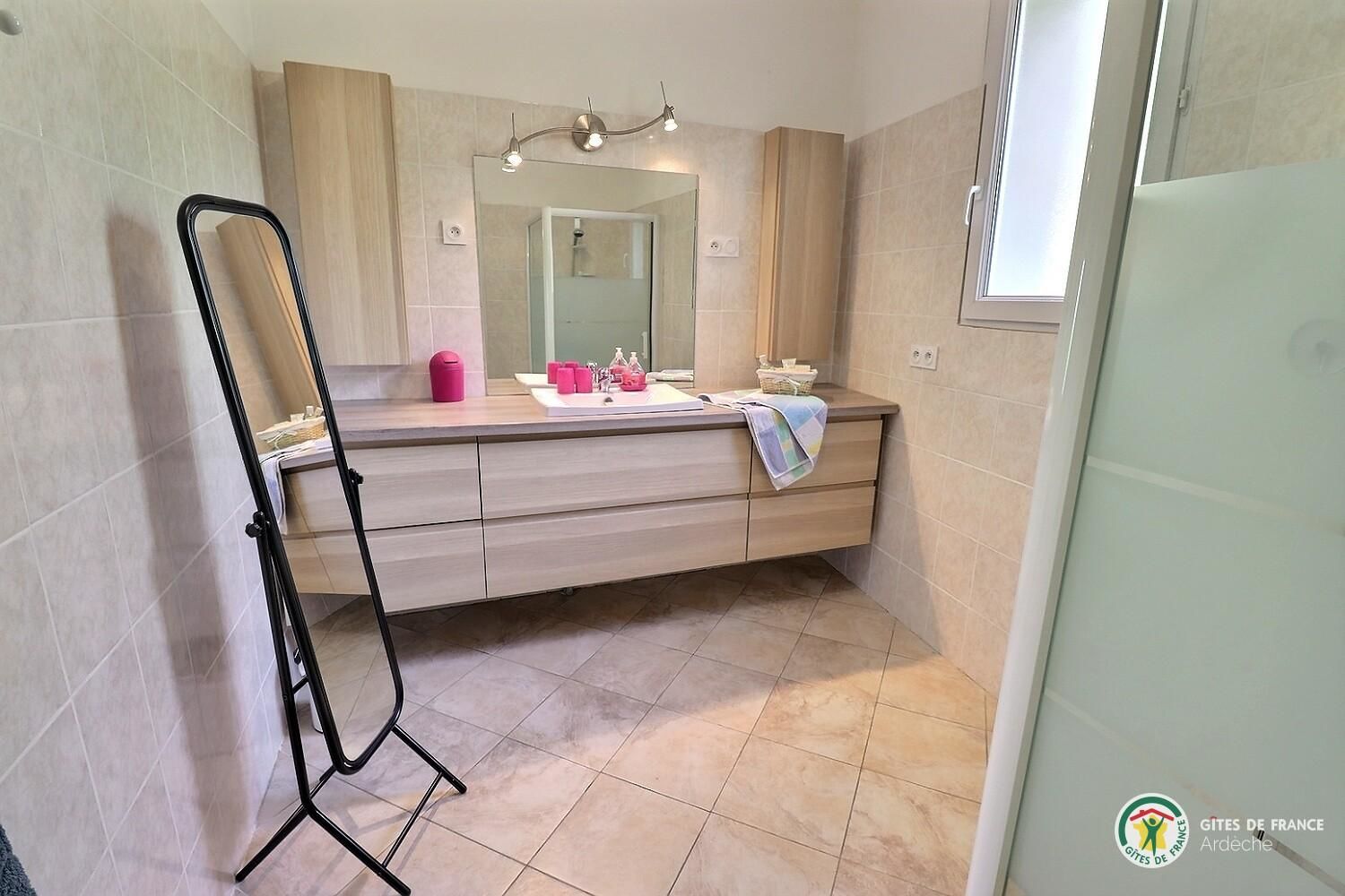 Maison en pierre de pays, en Cévennes Ardéchoises, à mi-chemin entre Laurac et Rosières. La maison comprend le gite et le logement du propriétaire. Gîte à l’étage avec terrasse fermée. Piscine commune avec le propriétaire entièrement sécurisée.