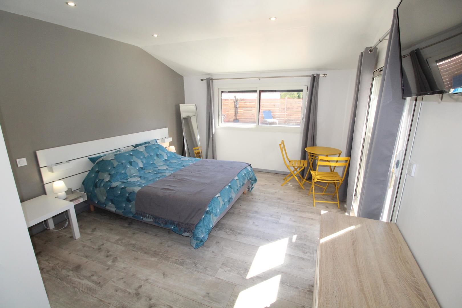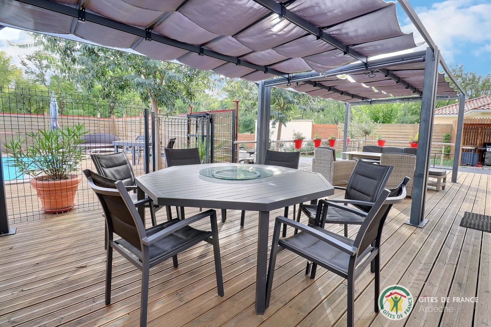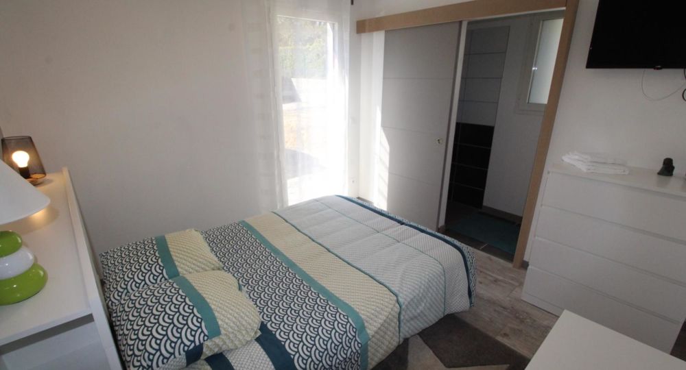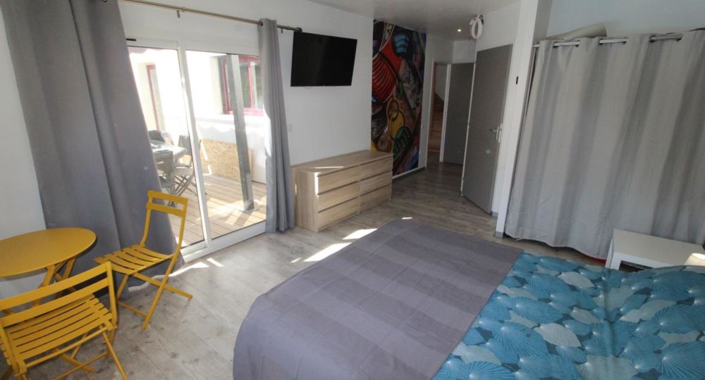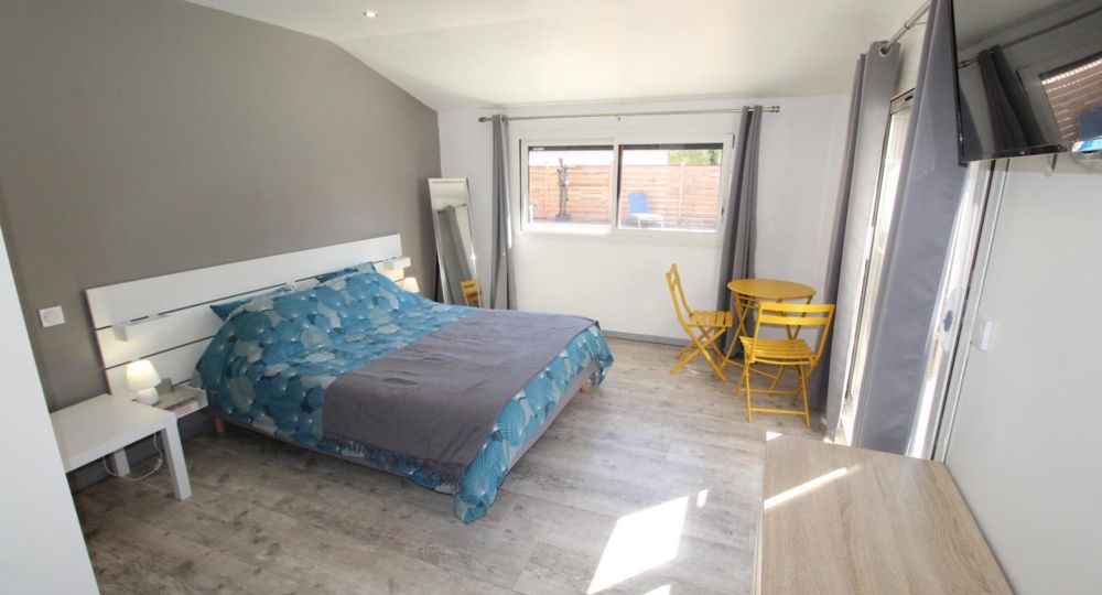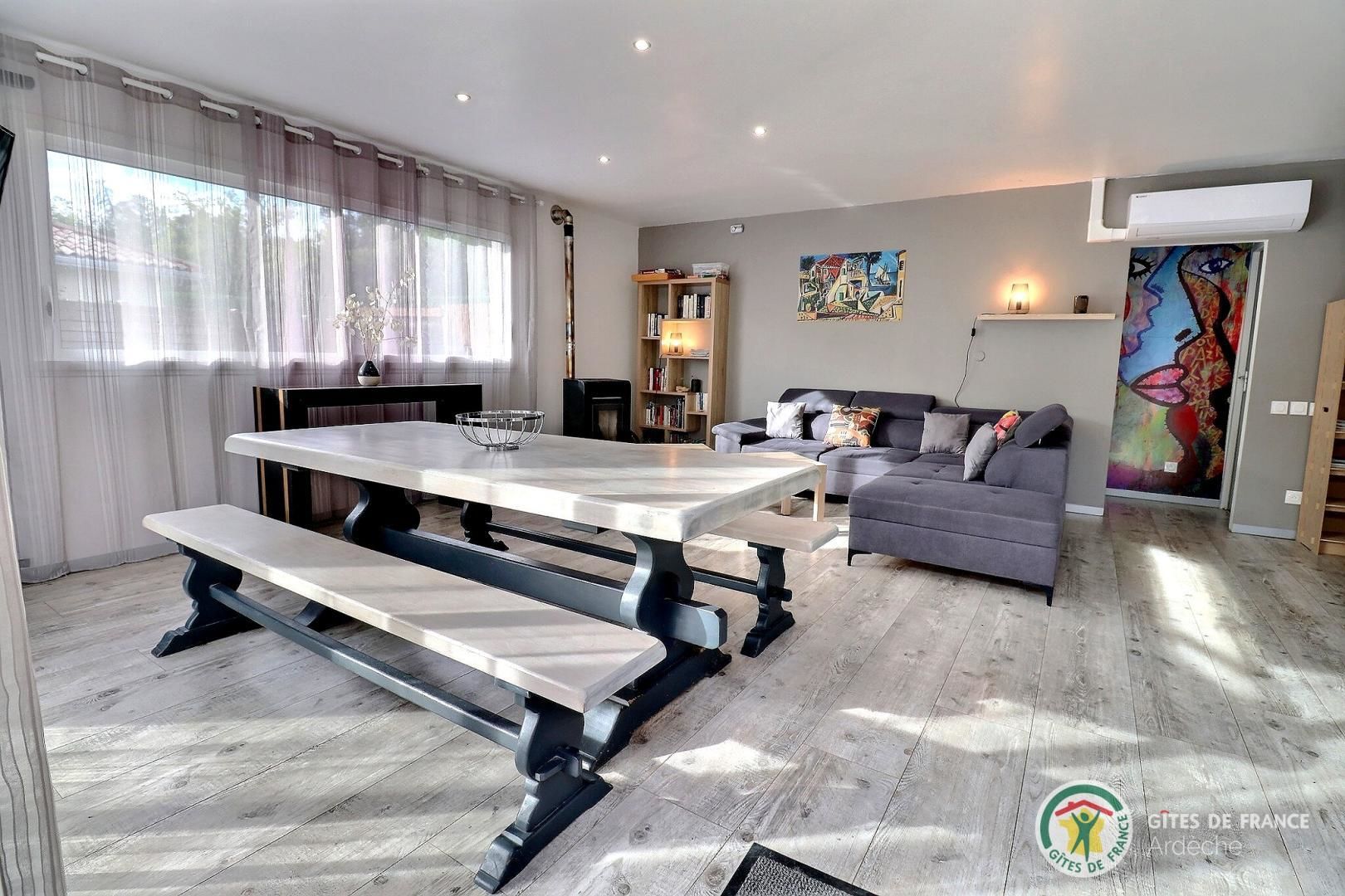 A l’intérieur, au rez de chaussée, vous passerez du temps dans la pièce de vie chaleureuse, toute l’année, grâce à la climatisation et le poêle à granules. Toute les chambres sont climatisées. Vous en trouverez 3 avec 2 lits en 160 et un lit en 140, avec salles d’eau privatives et TV. Une est aménagée pour les personnes à mobilité réduite.
