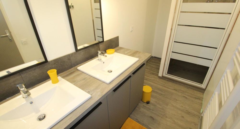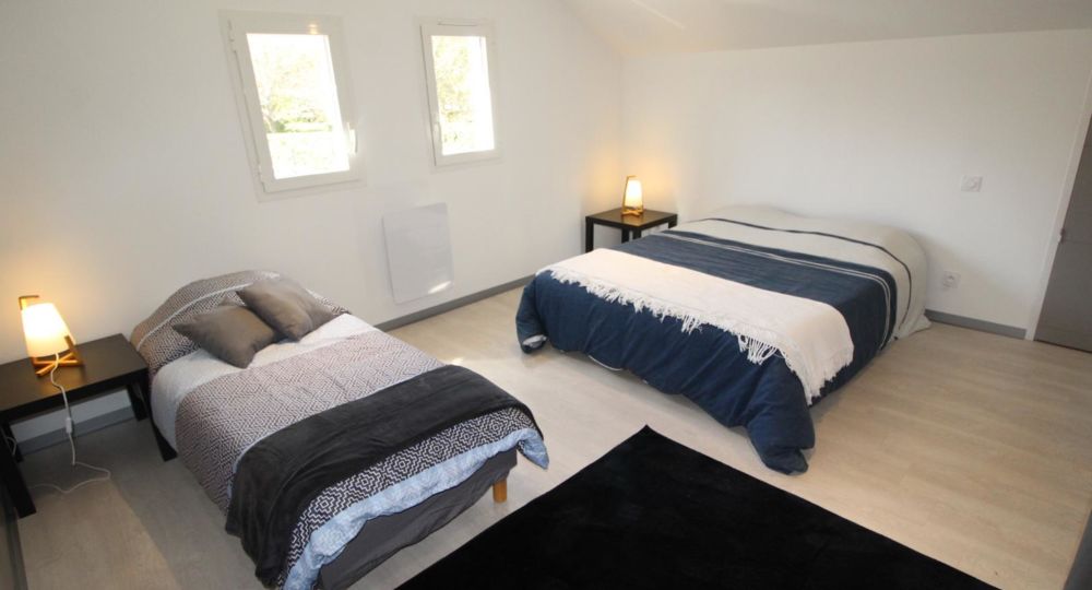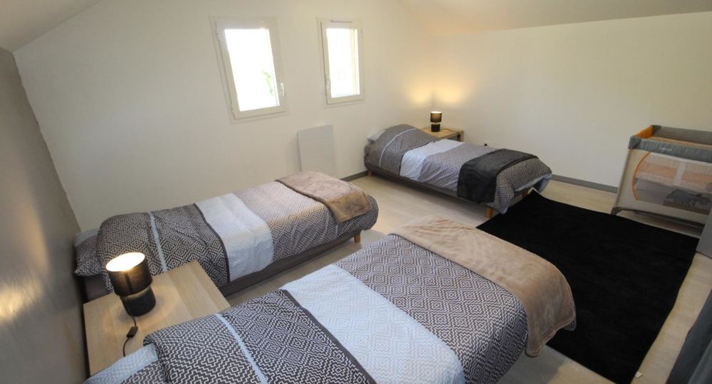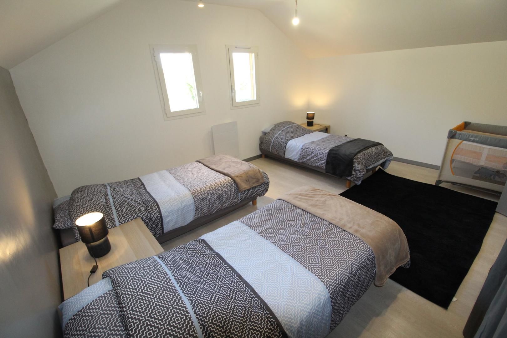 Buanderie avec lave-linge et sèche-linge à disposition. A l’étage, vous accédez à une chambre avec un lit en 140 et un lit en 80, une chambre avec 3 lits en 80 et d’un espace avec canapé, TV et jeux pour les enfants. Salle d’eau à l’étage avec une douche italienne. WC indépendants à chaque niveau. Pour la climatisation réversible : consommation 30kw/jour afin de sensibiliser votre utilisation à des fins plus écologiques.