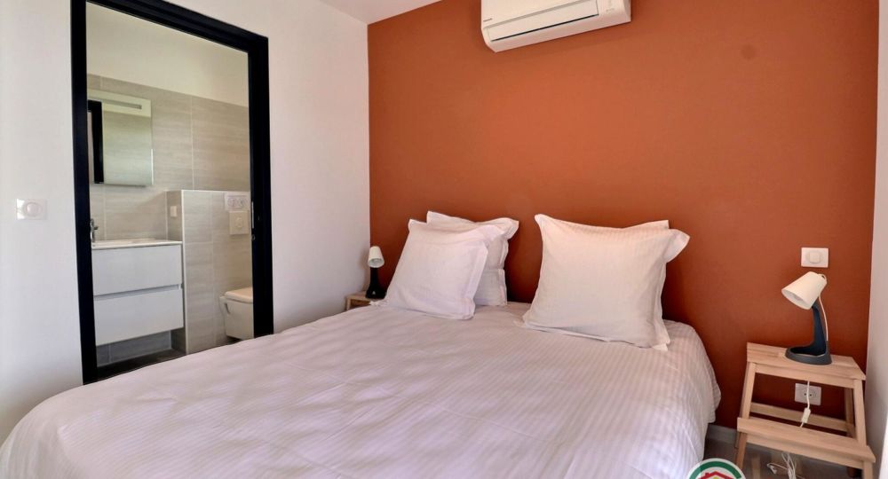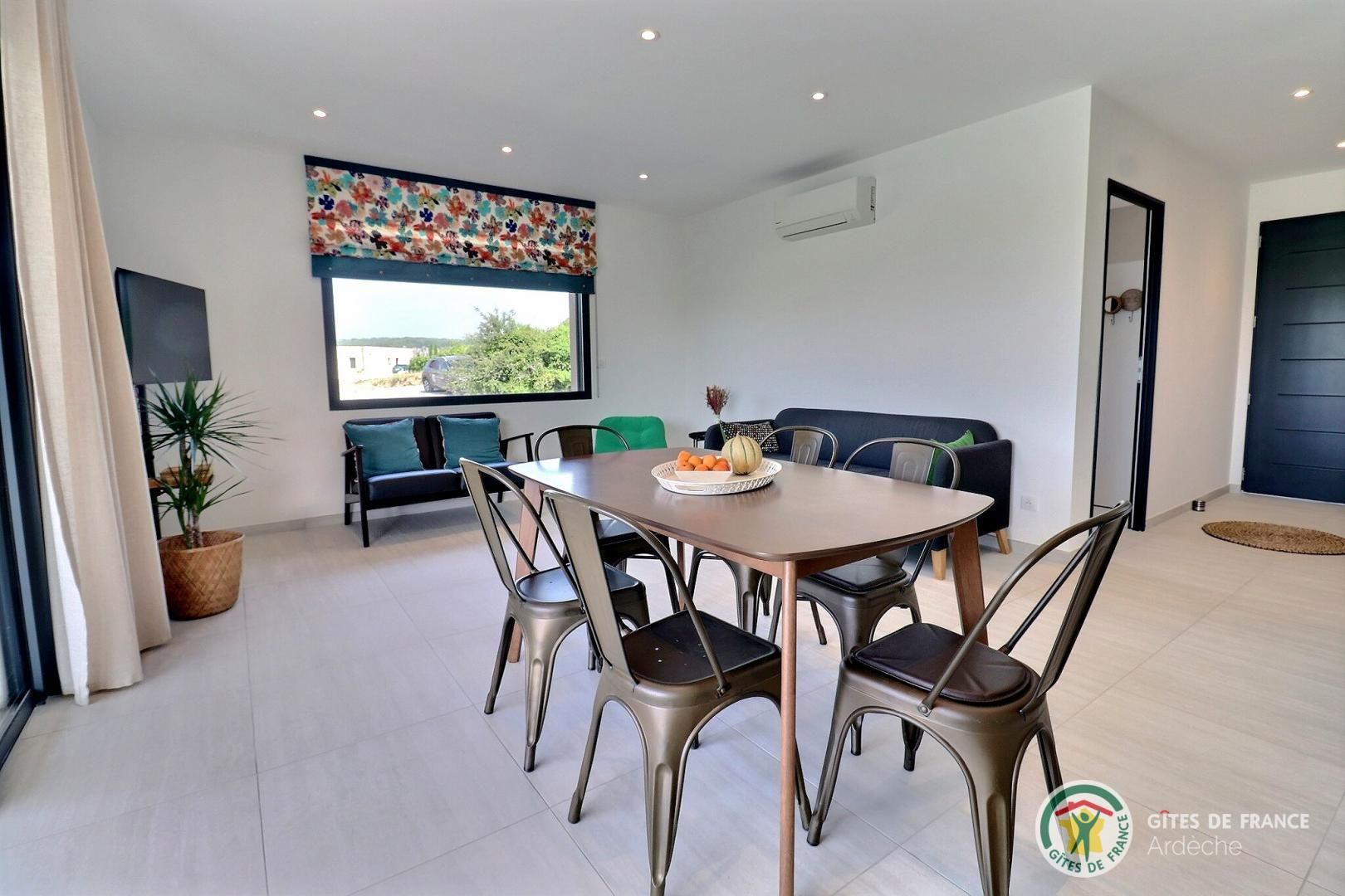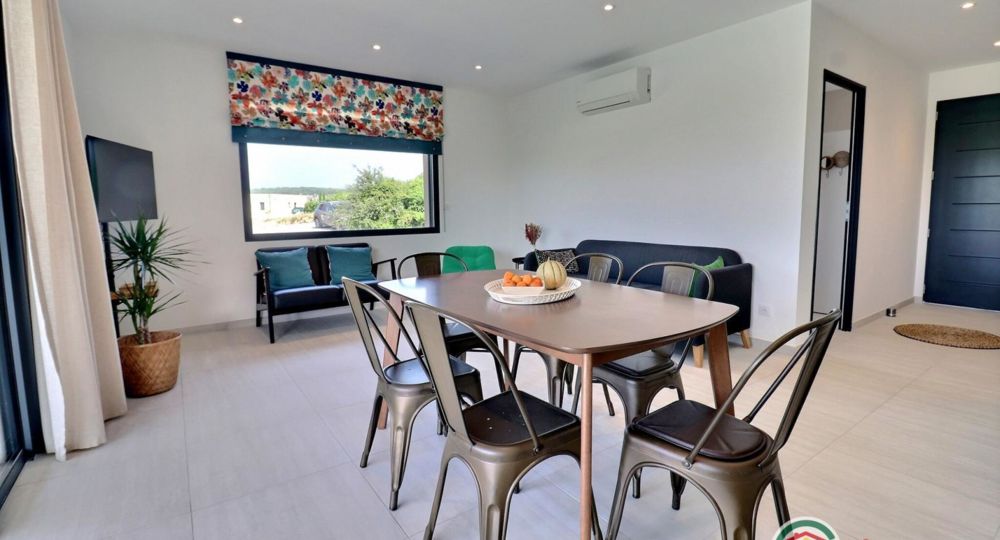 La grande pièce de vie est baignée de lumière grâce à ses baies vitrées. Que ce soit en famille ou entre amis, tout est pensé pour partager des moments chaleureux. Et pour un confort optimal en toute saison, la villa est climatisée dans chaque pièce.