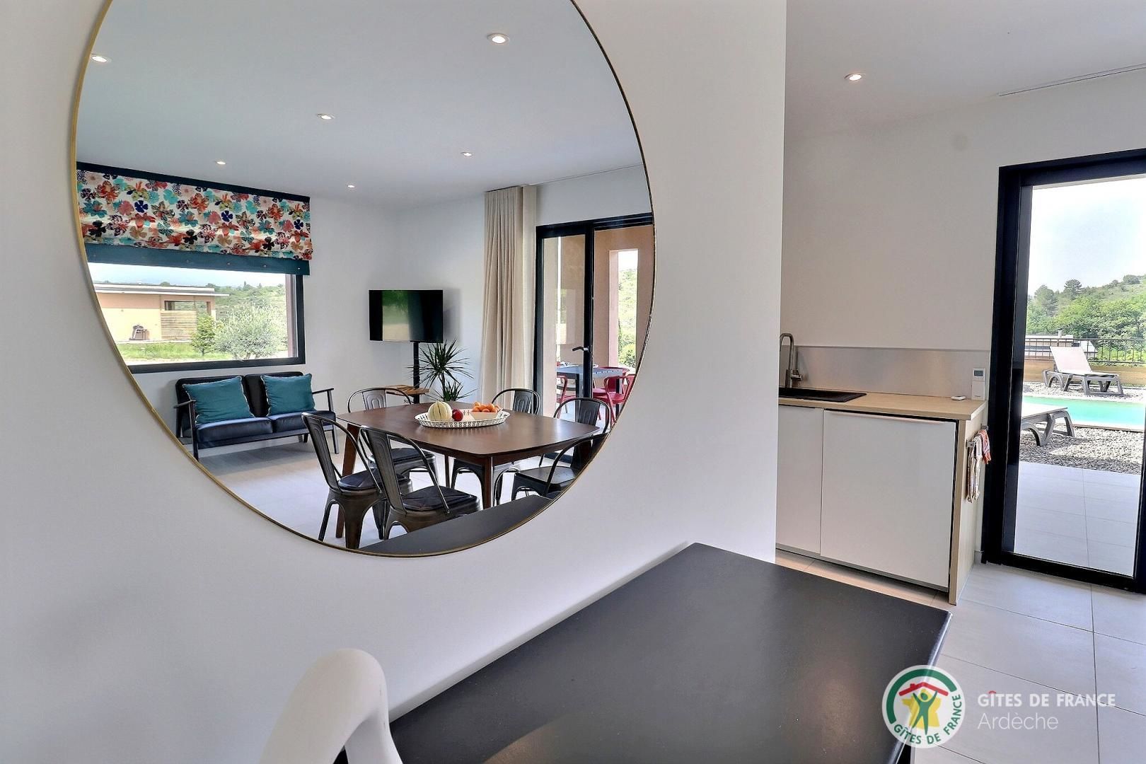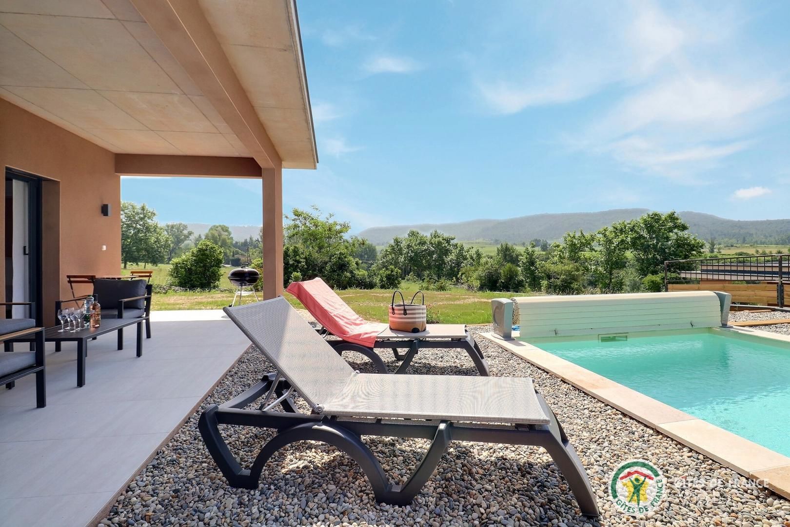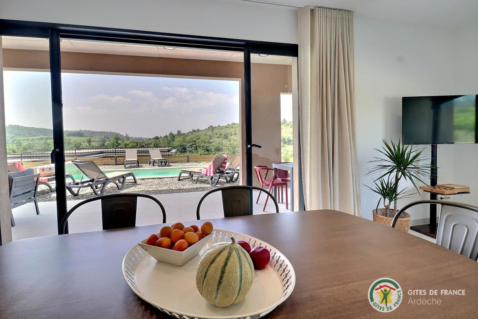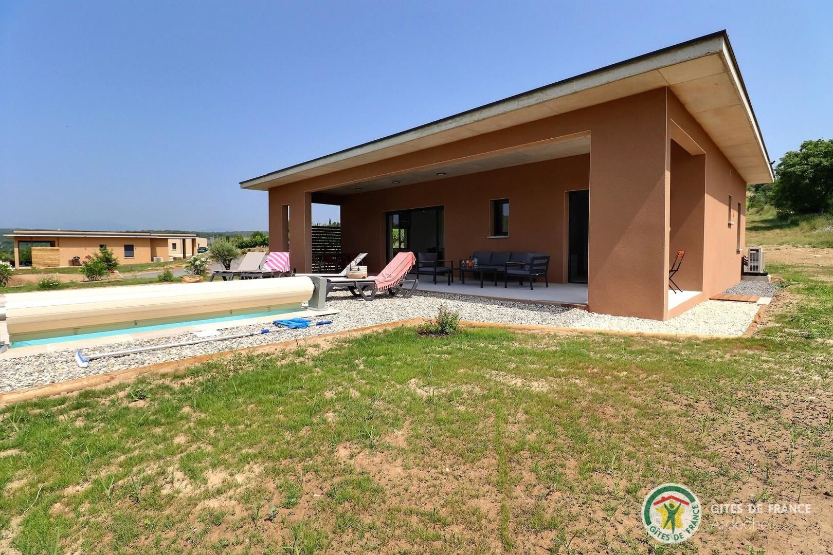 La belle piscine privative, sécurisée, vous attend pour des journées farniente sous le soleil ardéchois.