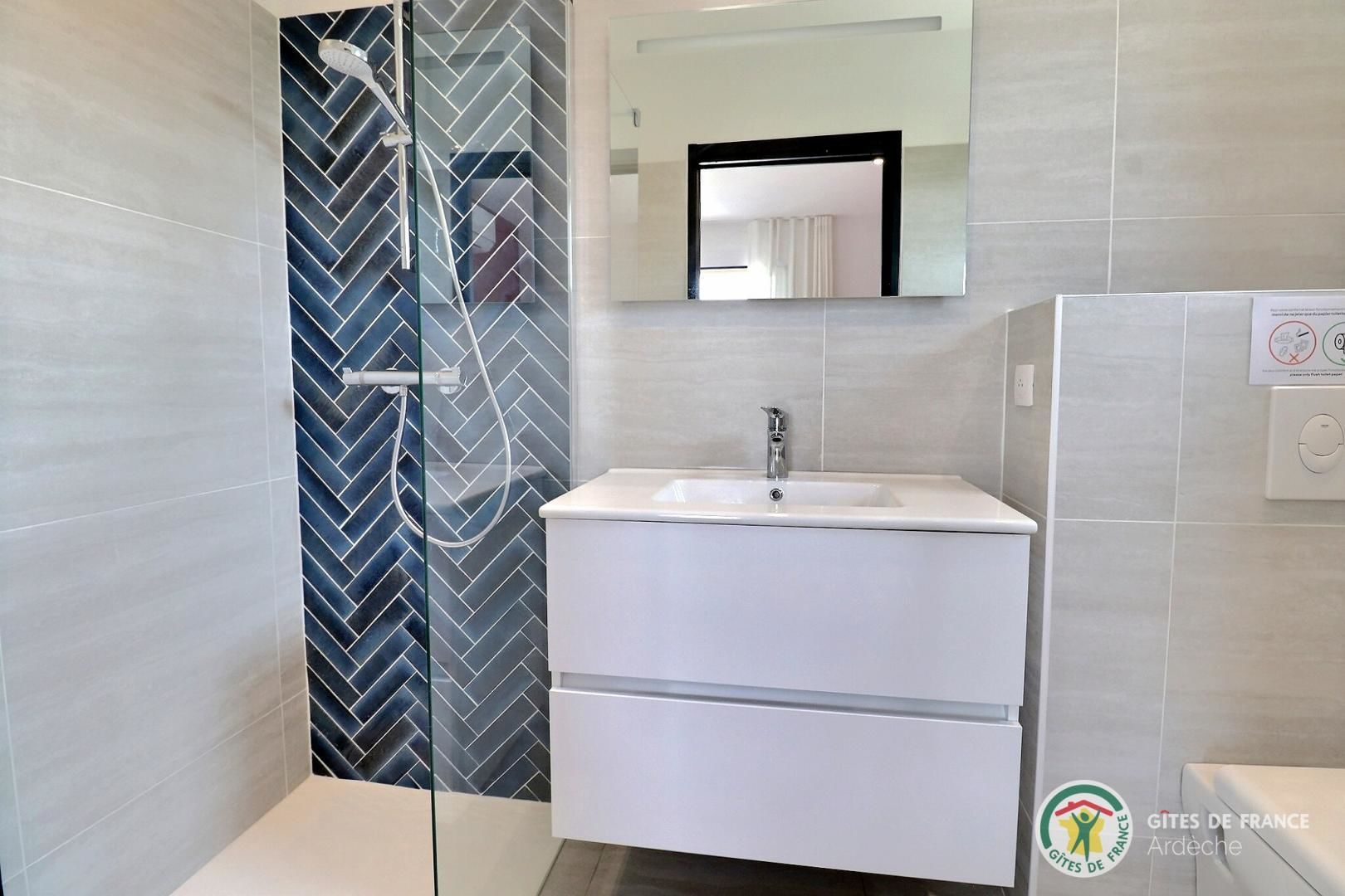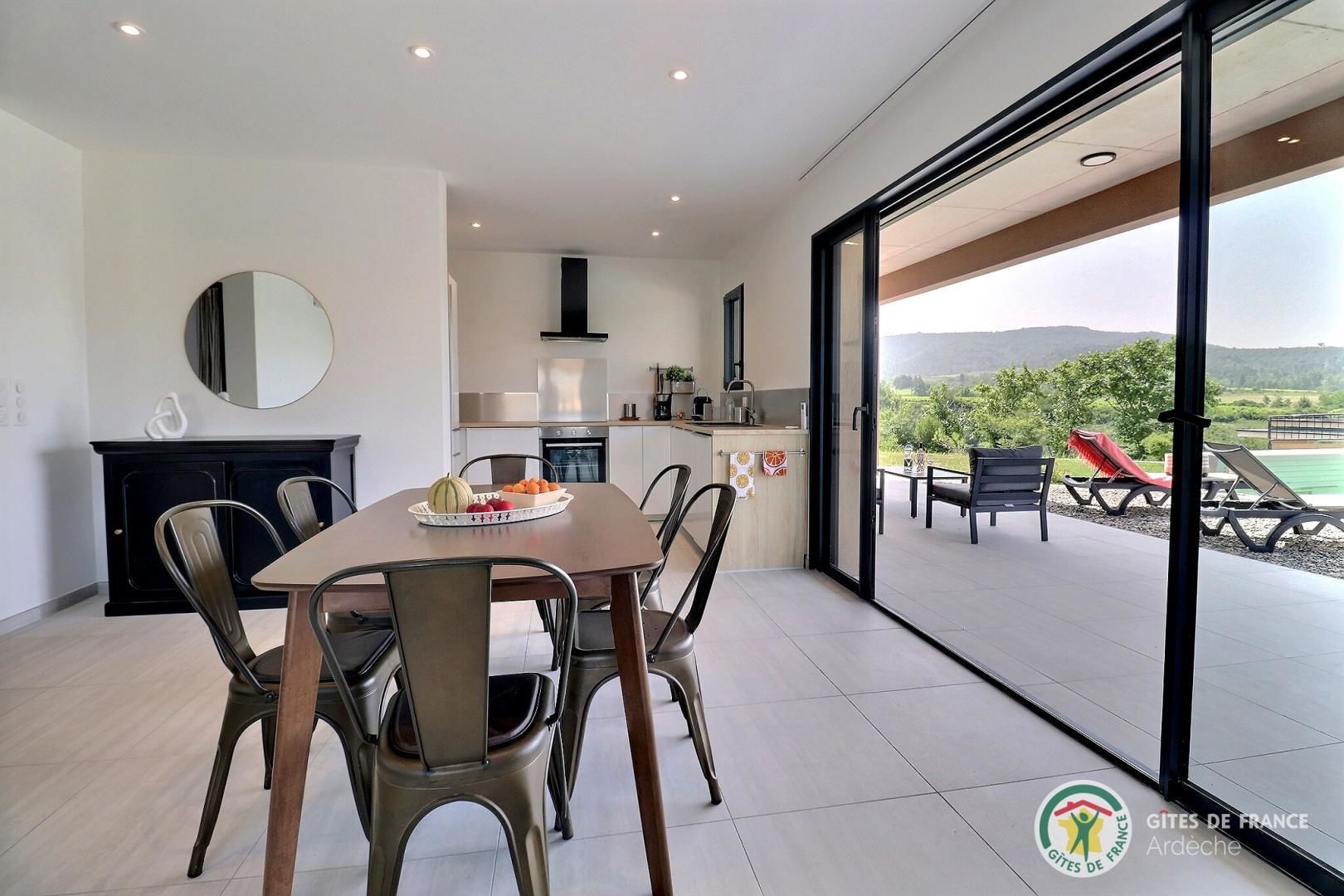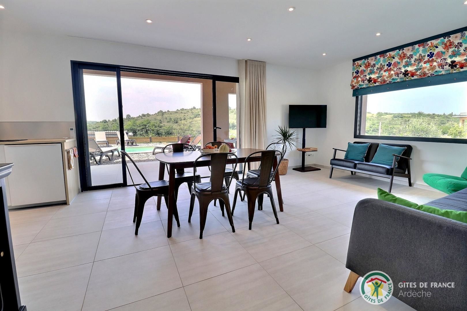 La belle piscine privative, sécurisée, vous attend pour des journées farniente sous le soleil ardéchois.