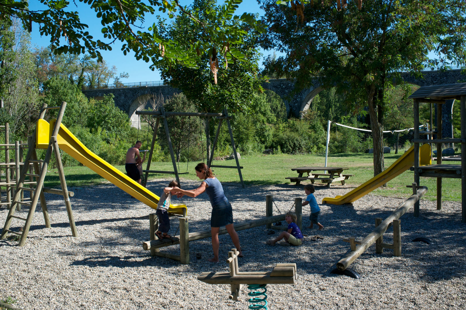 Notre camping en Sud Ardèche vous séduira avec son accès à la rivière privatisé, son espace aquatique avec piscines, toboggan et jacuzzi ! De nombreuses animations ponctueront votre séjour : activités enfants, interventions sportives, défis famille et concerts. Les enfants adorent nos aires de jeux ! Les emplacements de camping sont calmes et espacés, dans le respect de la Nature. Certains sont équipés d’une terrasse panoramique ou d’une pergola. Situé entre Aubenas, Montélimar et Vallon Pont d’Arc, vous séjournerez à proximité de tous les sites à voir absolument !