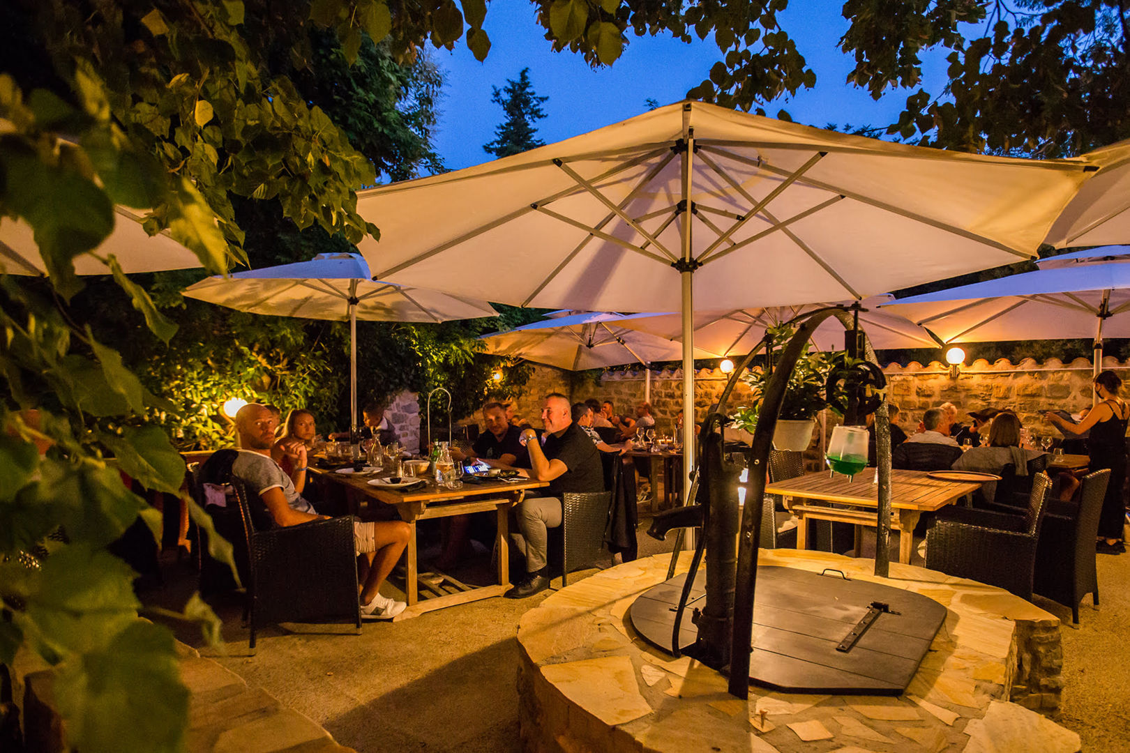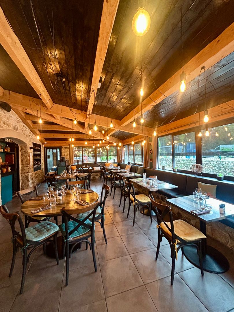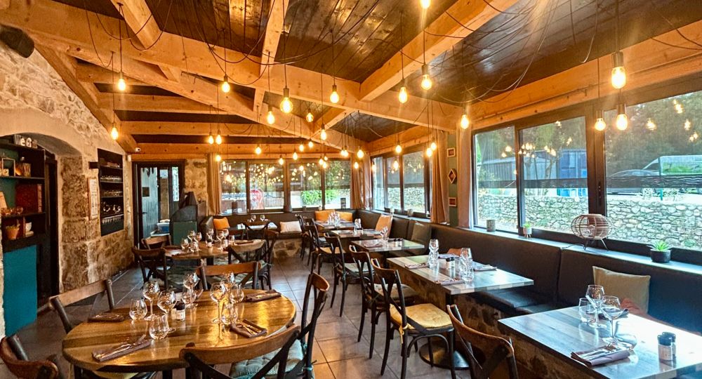 Le Jardin des Secrets : Authenticité, Créativité et Terroir Ardéchois Le Jardin des Secrets vous propose une carte qui met à l’honneur les produits locaux et de saison. La cuisine se veut simple, mais raffinée, respectant les traditions culinaires ardéchoises tout en y apportant une touche de créativité. En lien direct avec les producteurs locaux, les plats sont renouvelés régulièrement en fonction du marché pour garantir la fraîcheur et l’authenticité des saveurs. La carte est complétée par une sélection de vins locaux mais aussi d’ailleurs. Le restaurant vous accueille dans un cadre entièrement rénové, d’un style moderne qui préserve l’âme du lieu, notamment par la présence de la pierre apparente. Un véritable atout charme : la magnifique terrasse estivale. Entourée de fleurs, d’eau et d’un cadre verdoyant, elle offre une atmosphère paisible et romantique, idéale pour les repas en extérieur. Le lieu est également un lieu de vie : chaque vendredi soir, des soirées musicales avec des groupes animent le dîner et accompagnent vos assiettes gourmandes. Une adresse incontournable pour les amoureux de la bonne cuisine et des moments animés, ouverte à l’année à Grospierres.